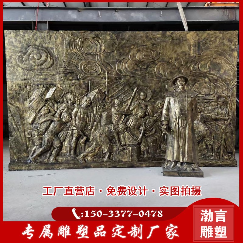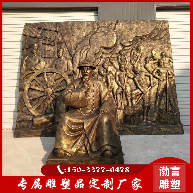 玻璃钢禁毒浮雕展厅装饰背景墙仿铜林则徐人物虎门T销烟戒毒所摆
