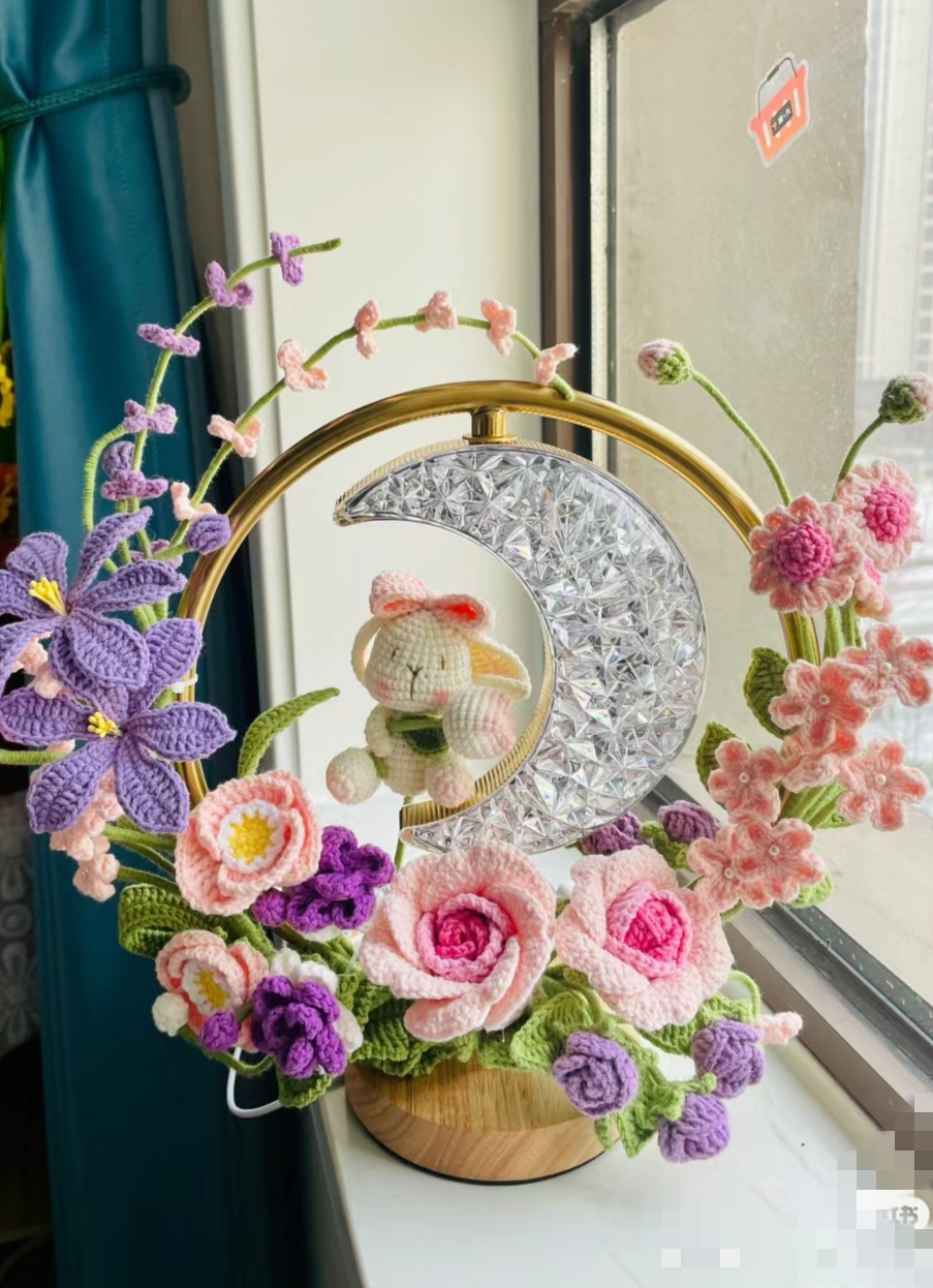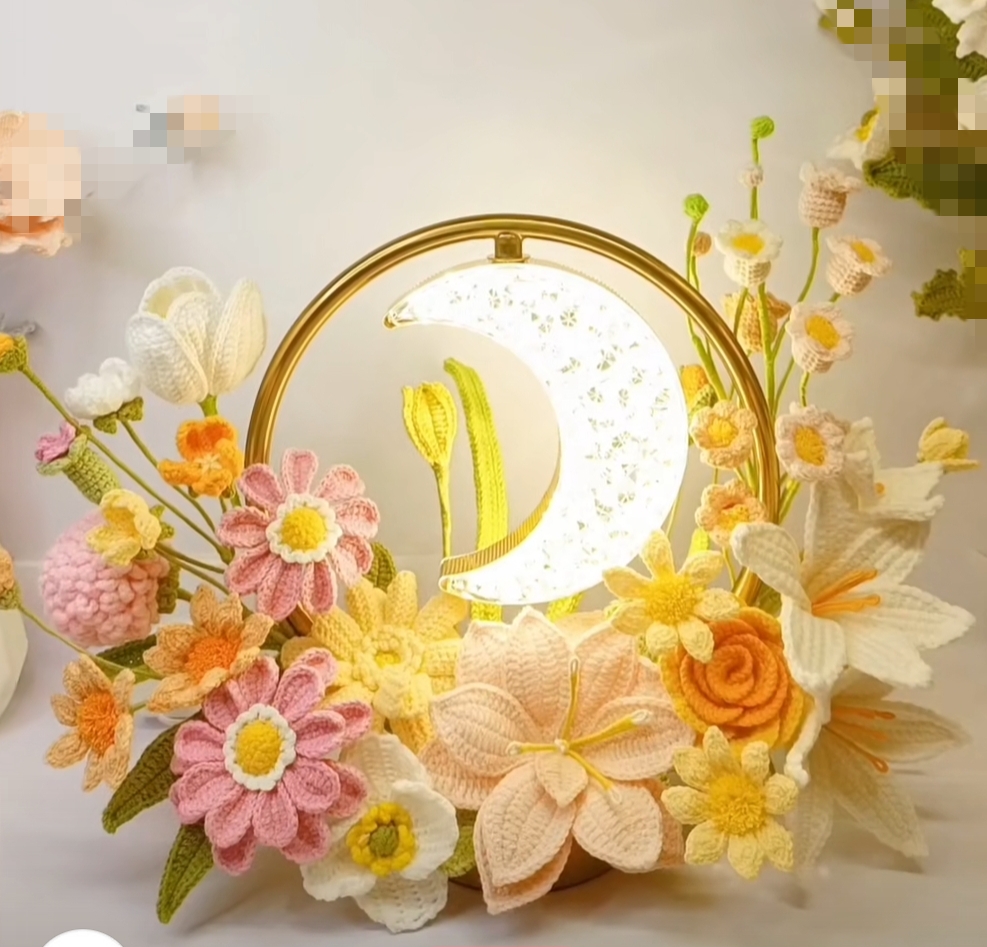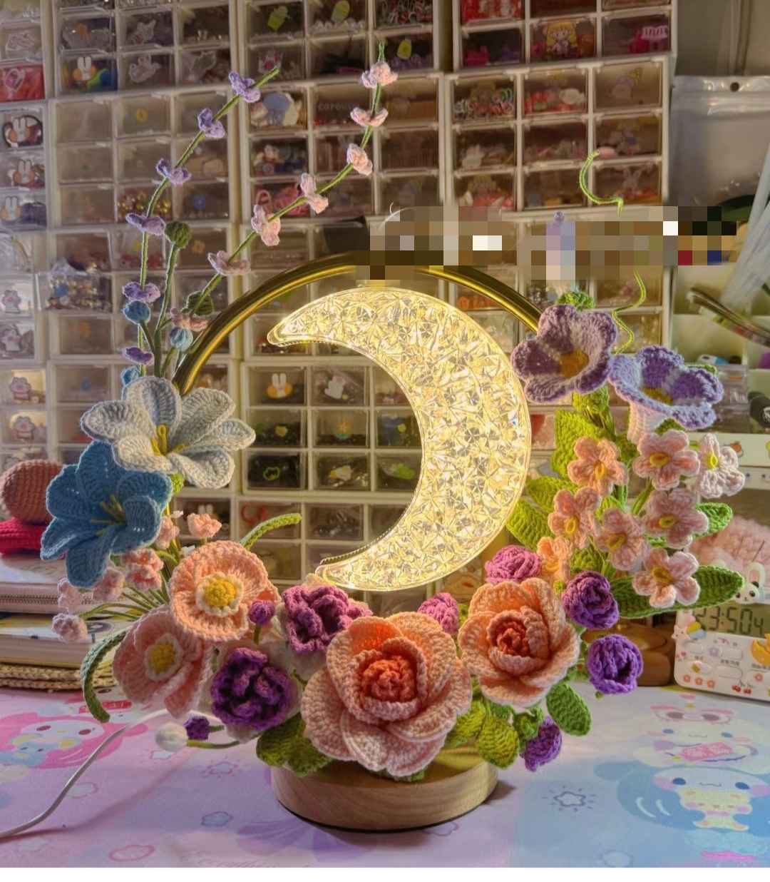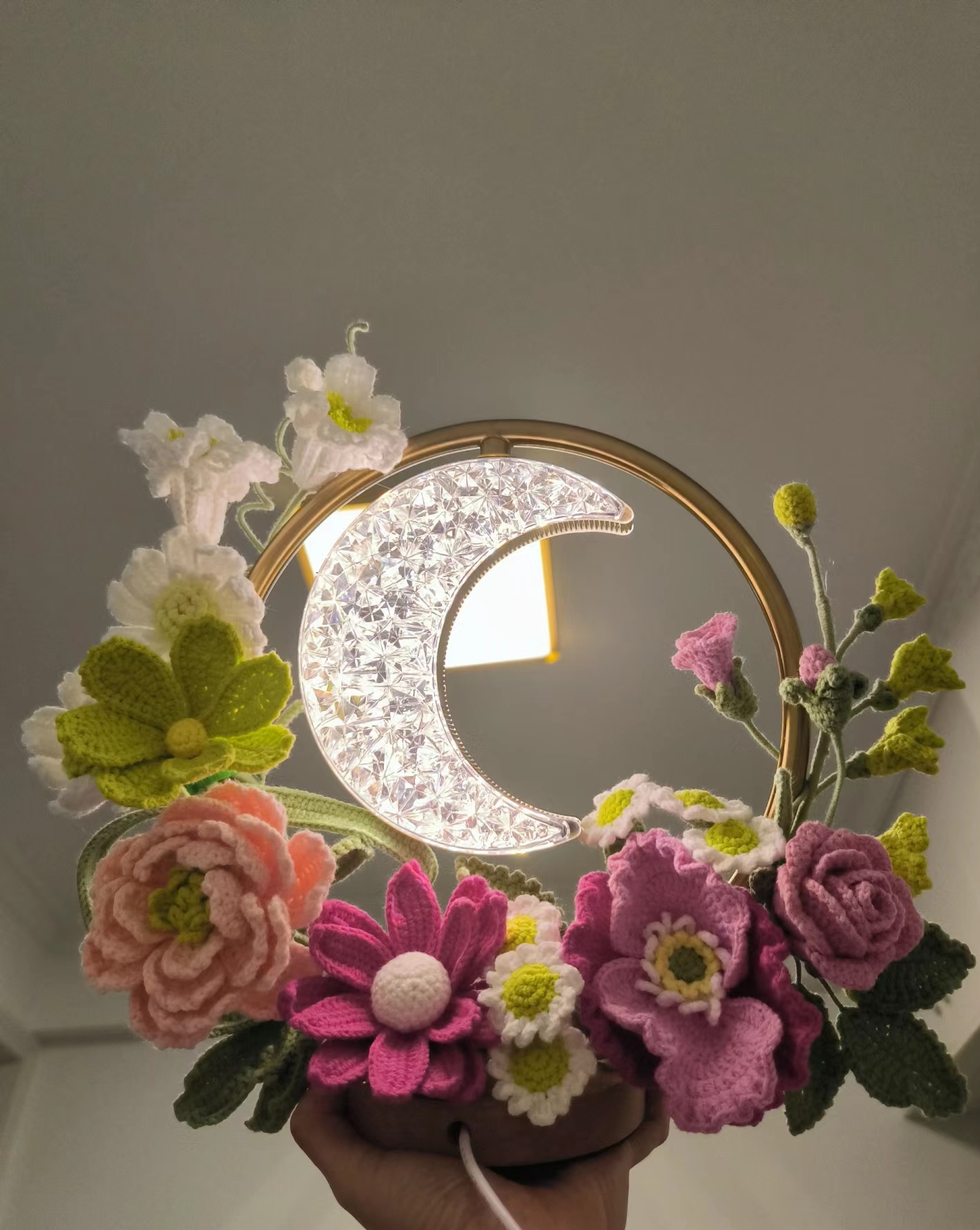 成品钩织花床头柜夜灯摆件手工月亮灯编织永生花成品睡眠灯创意