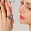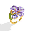 设计师款紫色鸢尾花珐琅花朵戒指女开口轻奢小众设计感食指戒春夏