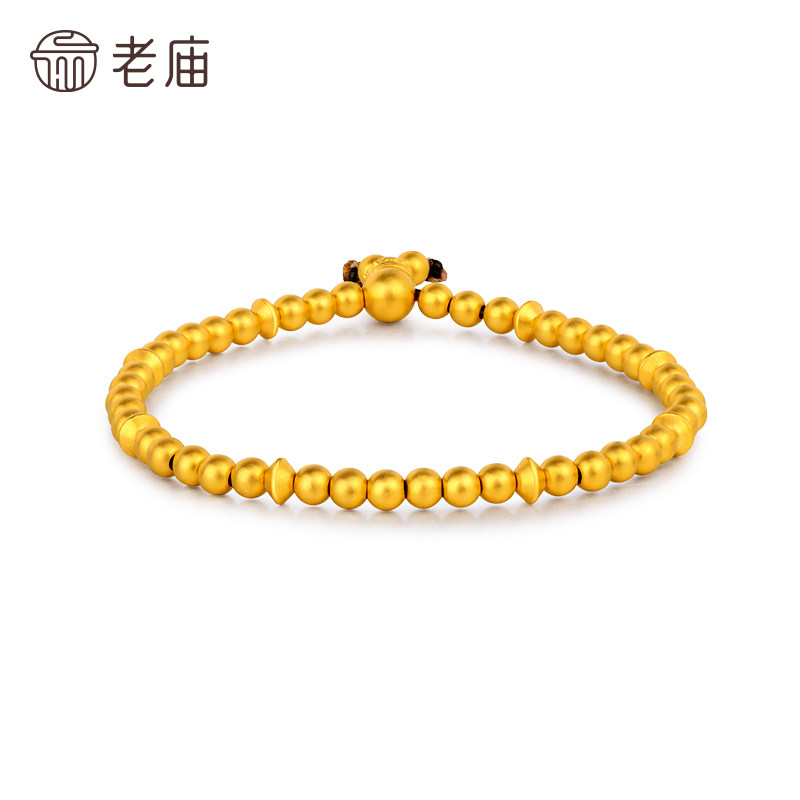 老庙黄金足金古法金古韵飞碟福慧弹力手链转运珠手串计价官方正品