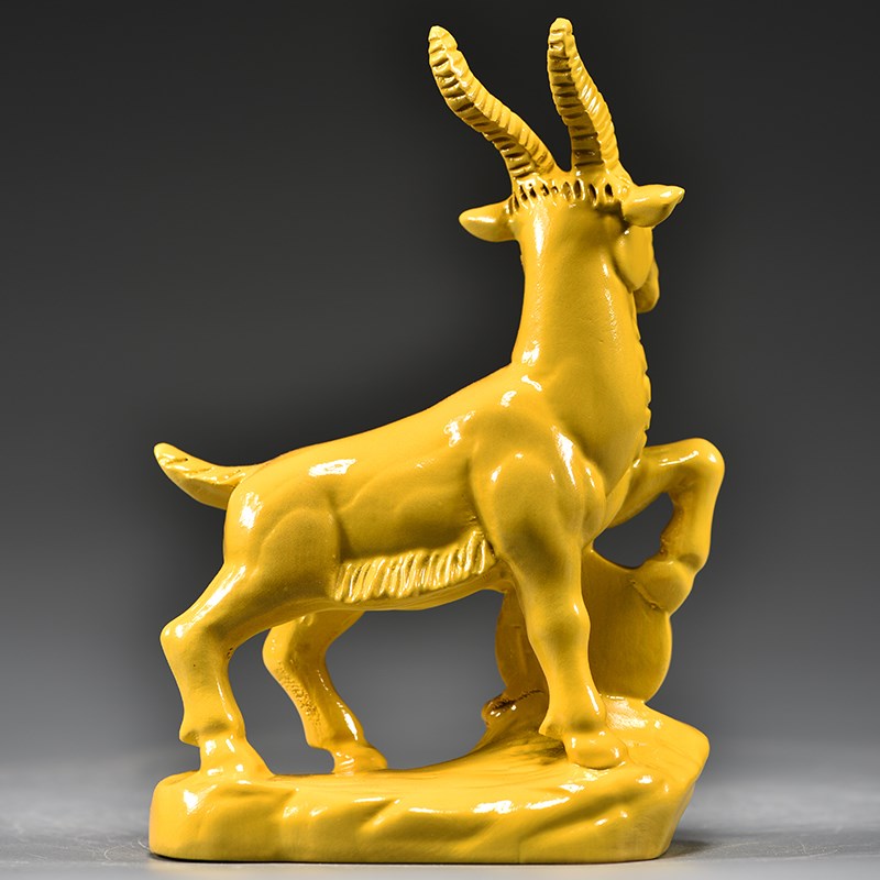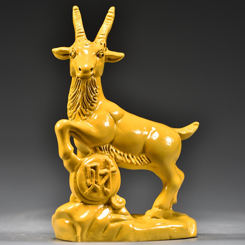 黄色木质木雕山羊摆件木质雕刻动物领头羊家居装饰乔迁送礼工艺品
