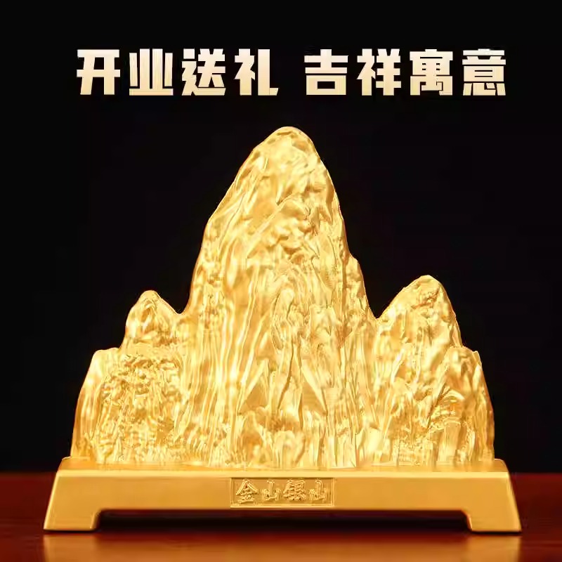 新中式沙金色金山银山假山创意装饰品小摆件客厅办公室茶桌面礼品