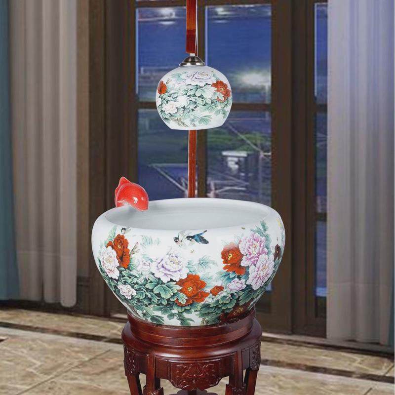 中式创意流水喷泉手绘陶瓷办公室客厅简约装饰鱼缸开业送礼摆件