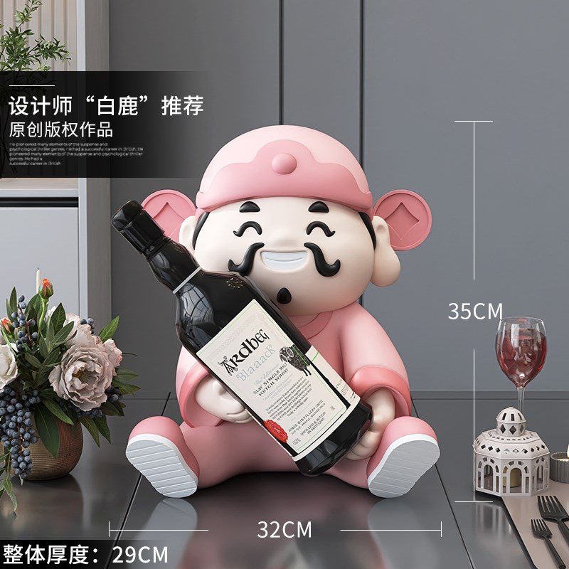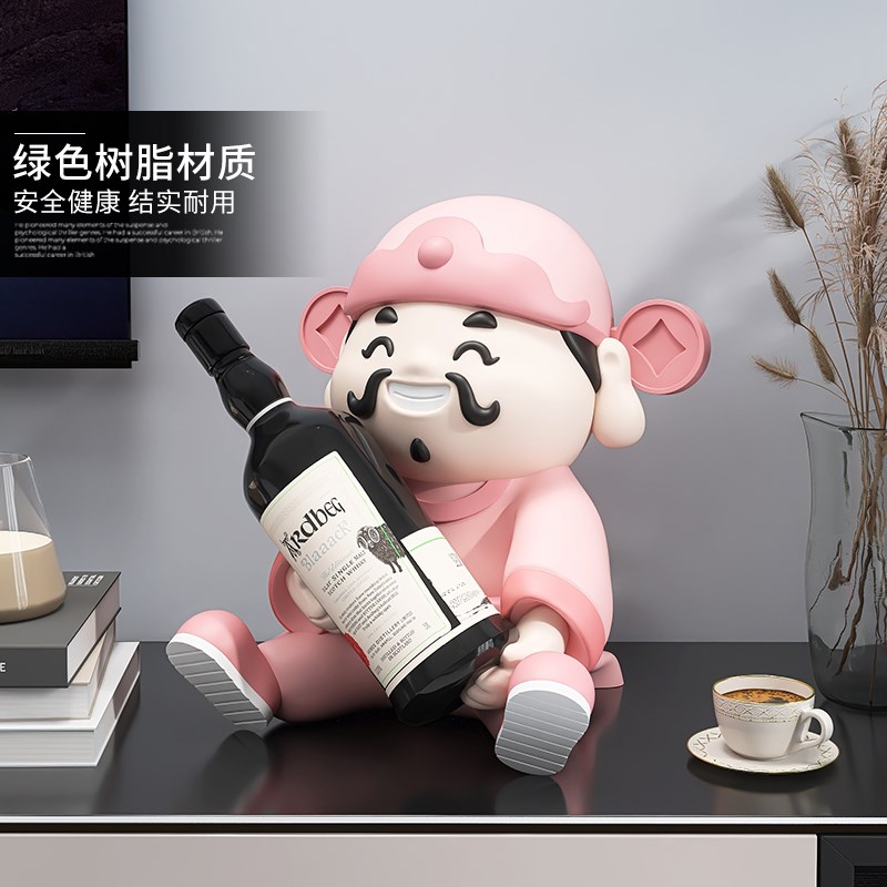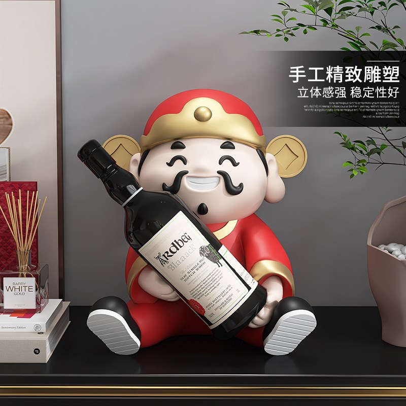 卡通财神爷创意红酒架摆件客厅玄关酒柜餐边柜酒托装饰品生日礼物