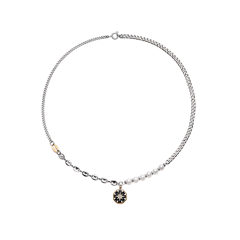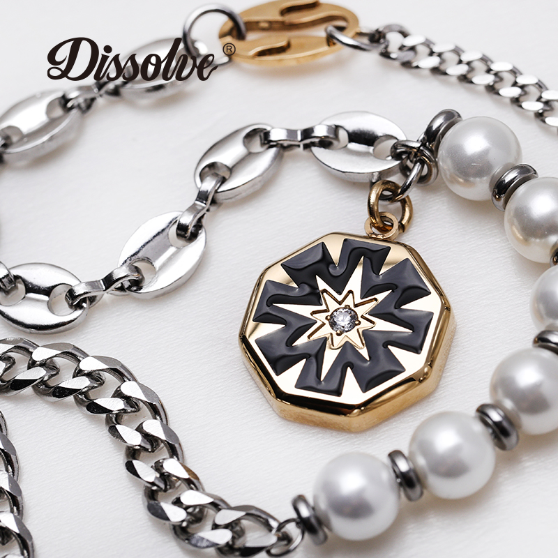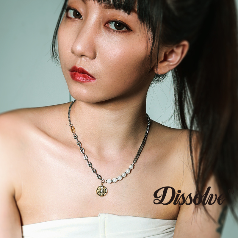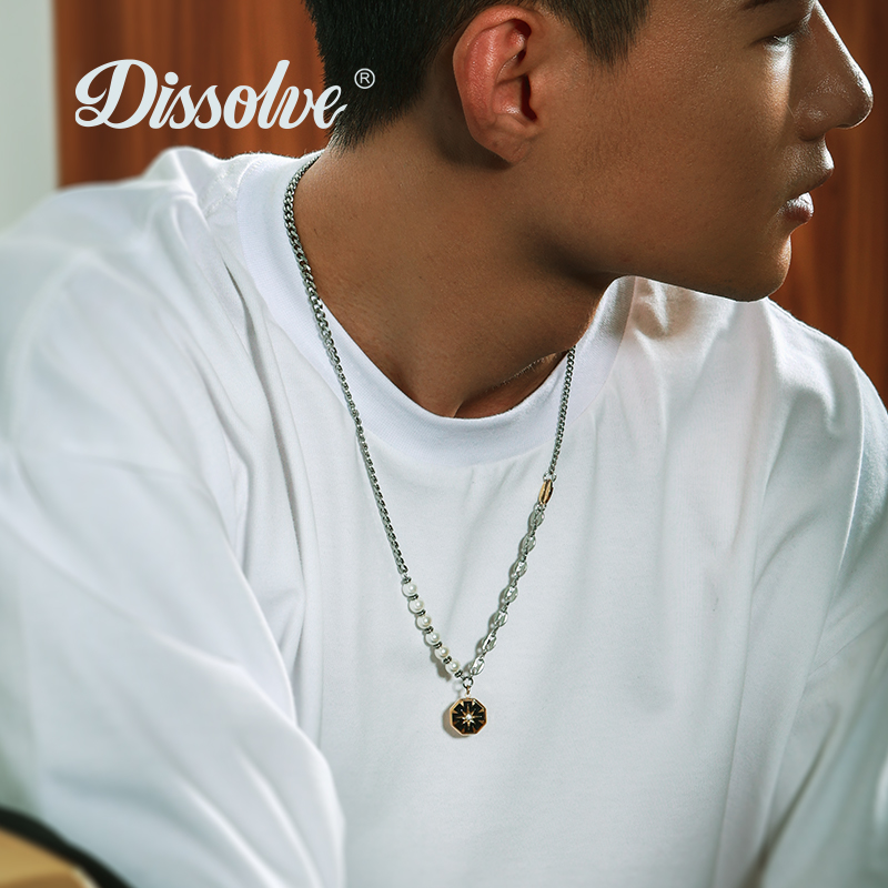 Dissolve项链男女潮珍珠拼接小众潮牌百搭送男友情侣星星圆牌吊坠