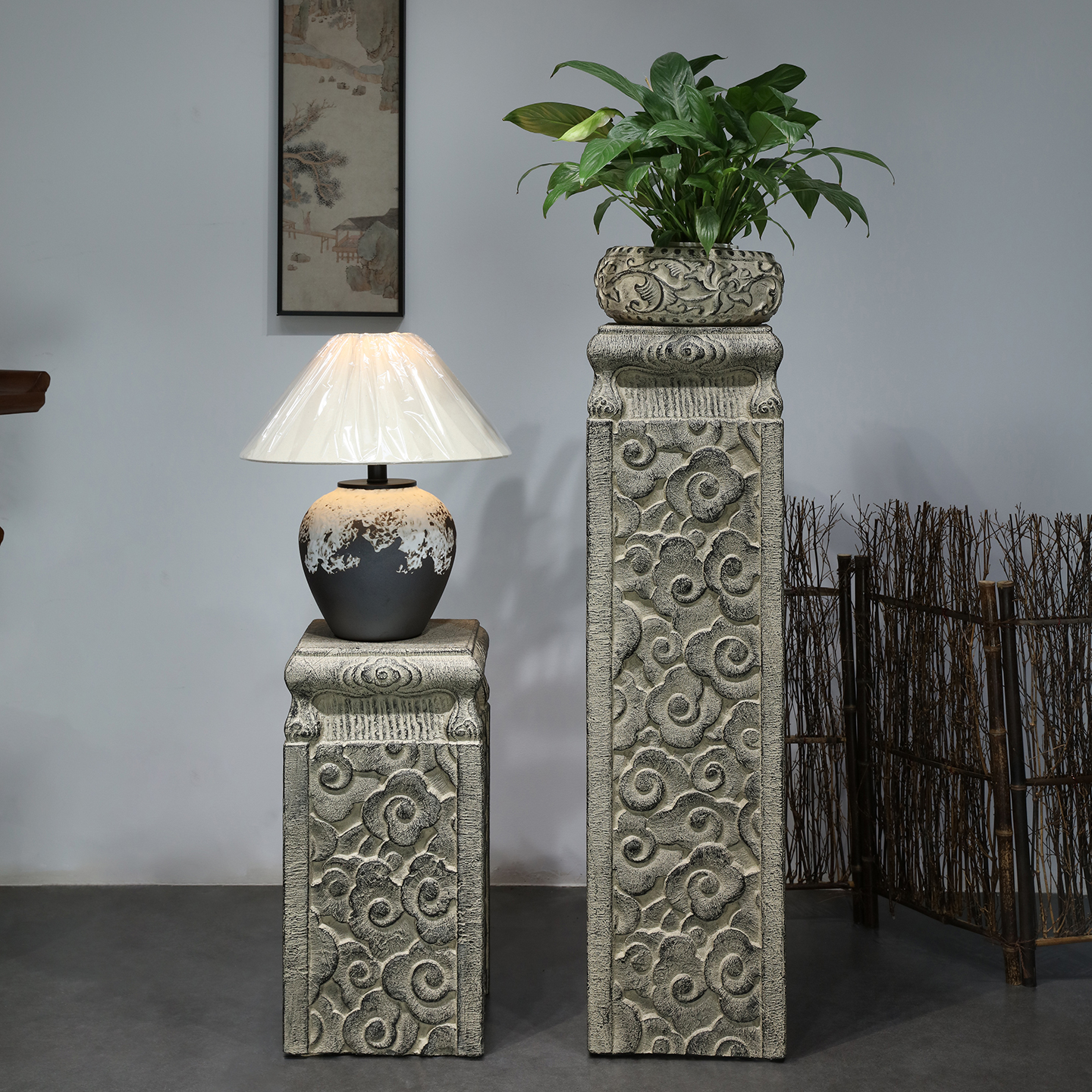 新中式祥云展示柱客厅玄关装饰仿石柱墩子 落地摆件盆栽花盆底座