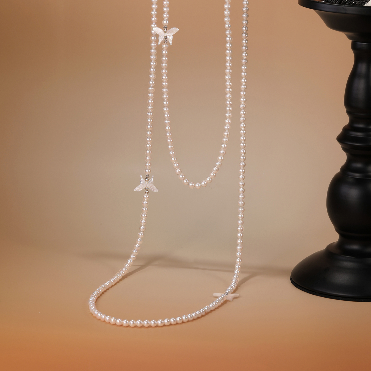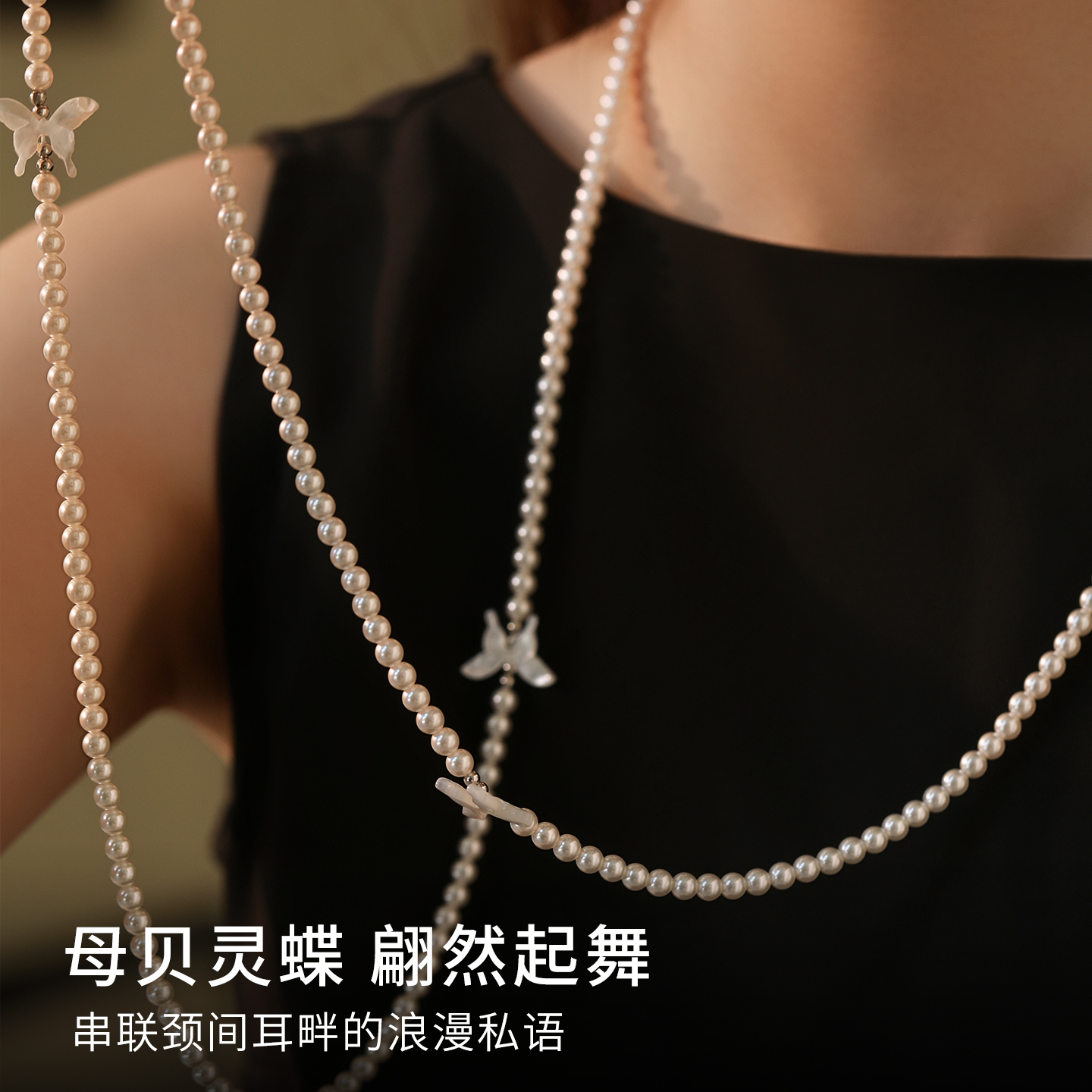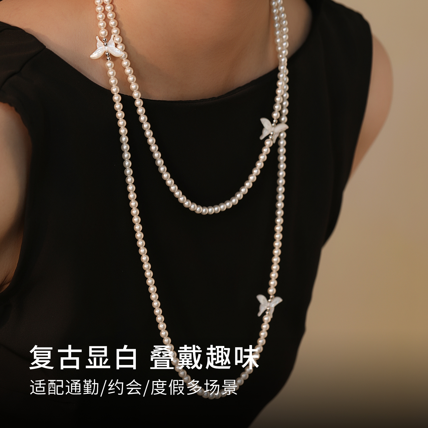 母贝蝴蝶长款珍珠项链毛衣链轻奢高级感秋冬双层叠戴配饰2025新款
