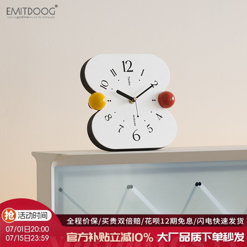 EMITDOOG奶油风客厅桌面摆件家居装饰品玄关高级感创意时钟摆放式