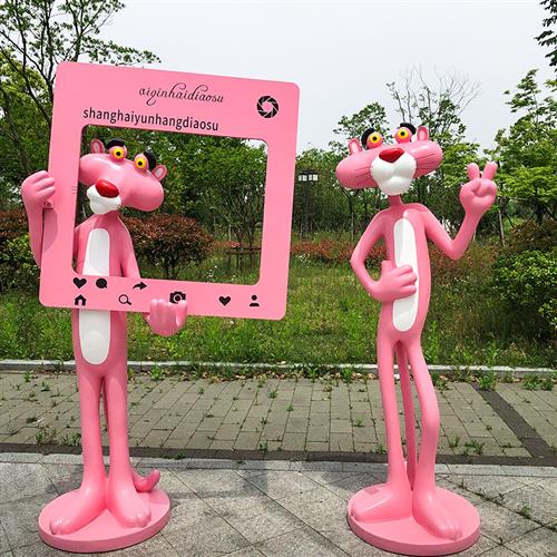 户外网红粉红豹玻璃钢雕塑卡通拍照摆件商场门店橱窗幼儿园大装饰