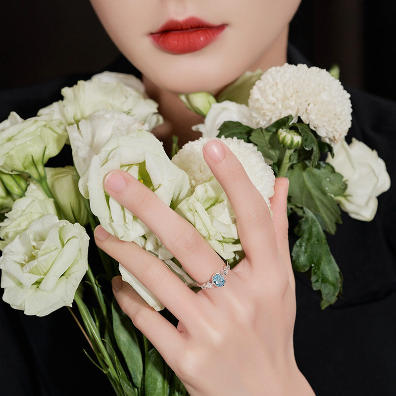 高端网红直播热卖新品仿天然海蓝托帕石简约开口戒指女 气质指环