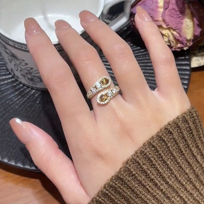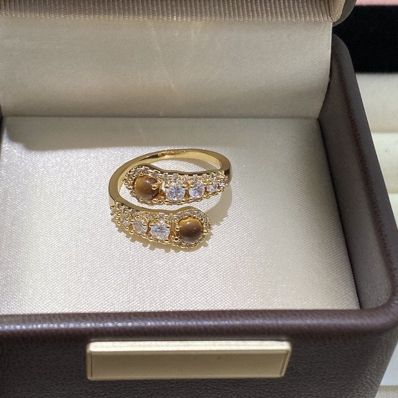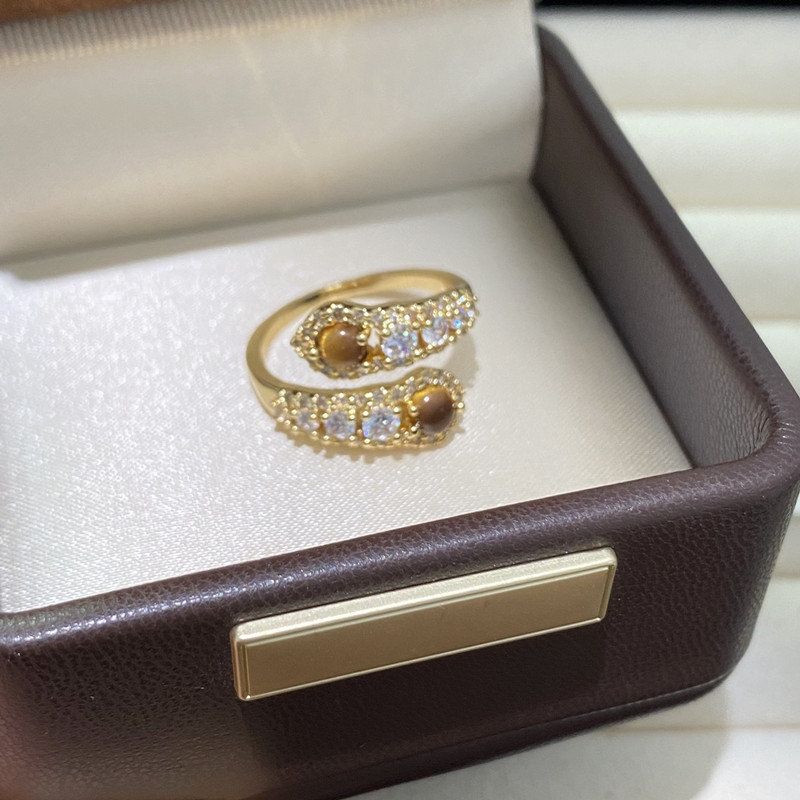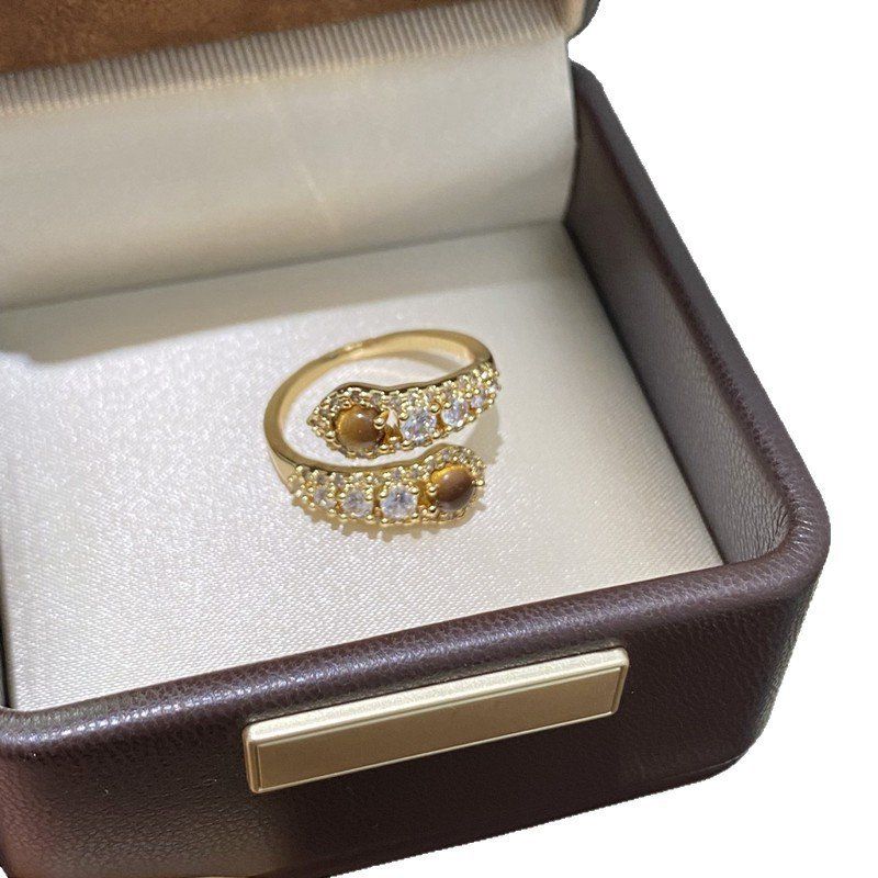 爆款美拉德虎眼石蛇形开口戒指女轻奢高级感金色锆石指环手饰品
