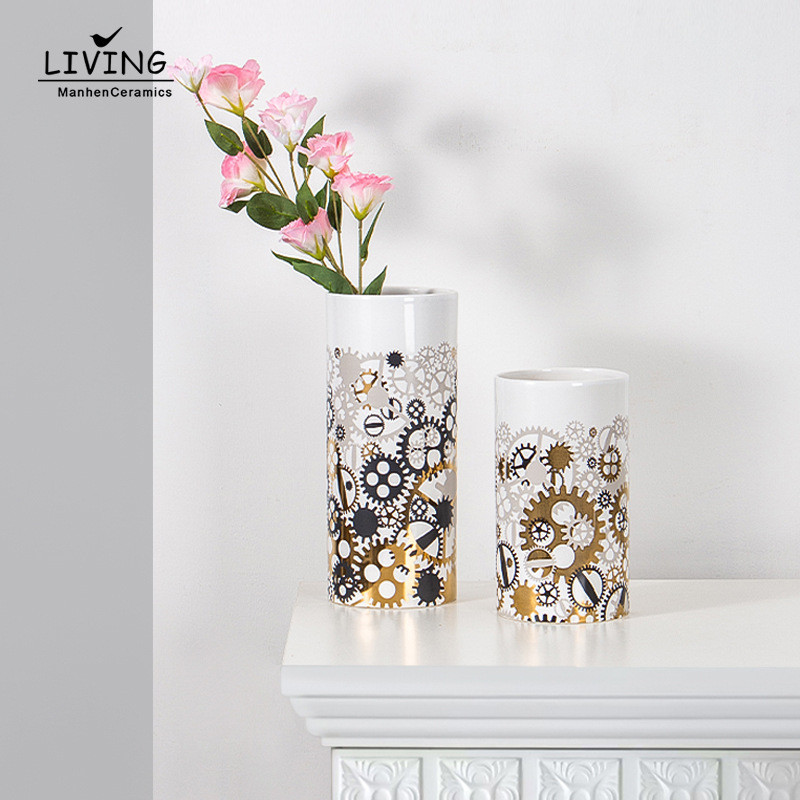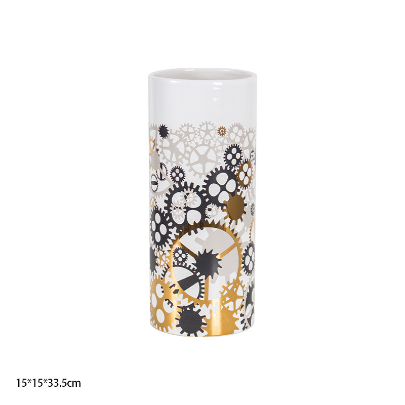 空间港中古风陶瓷花瓶宅寂风高级感插花水培软装摆件ins直筒工艺