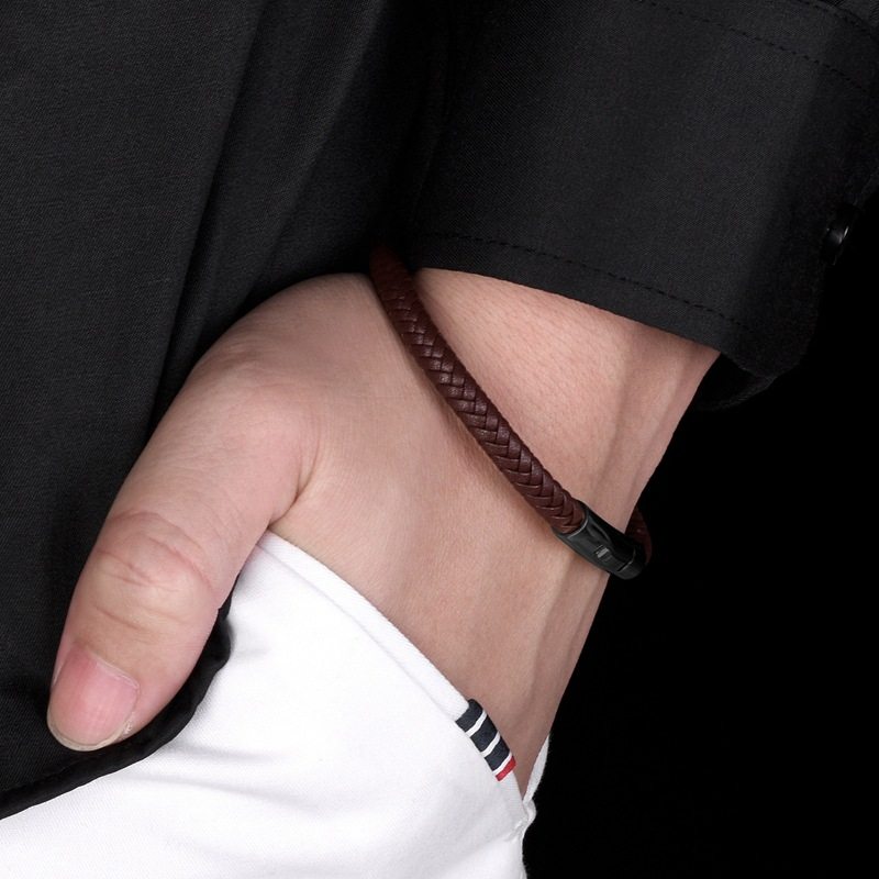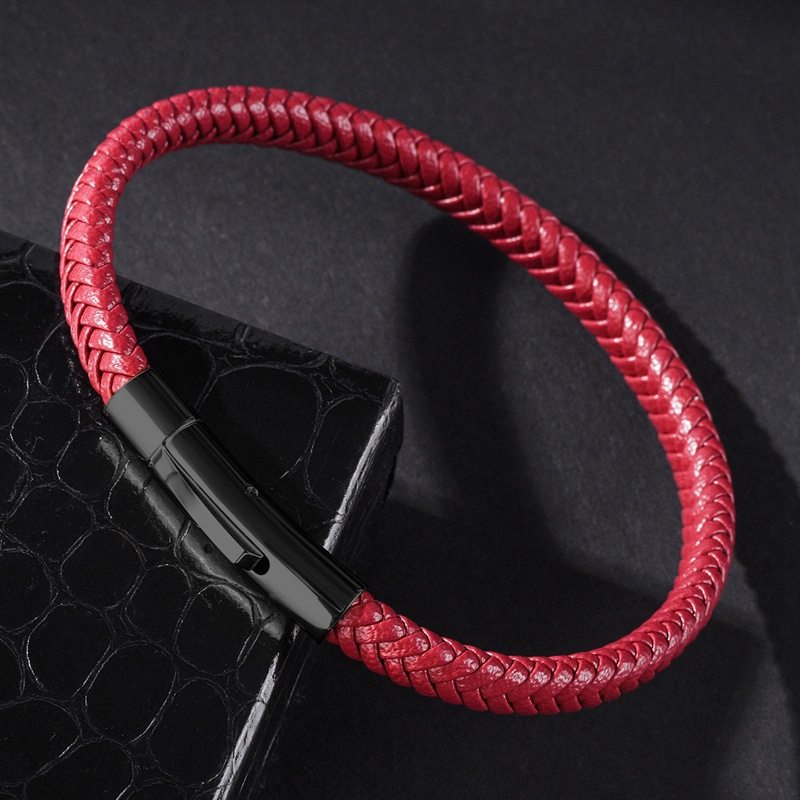 日韩时尚红色编织皮手链个性百搭黑色配饰手环男女本命年礼物刻字