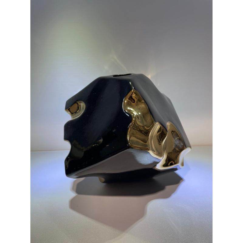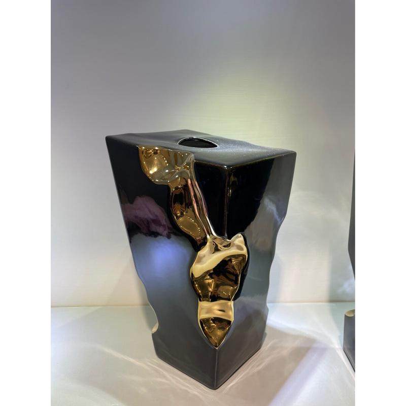创意黑色镀金陶瓷花瓶摆件装饰品时尚家居现代简约客厅台面摆设