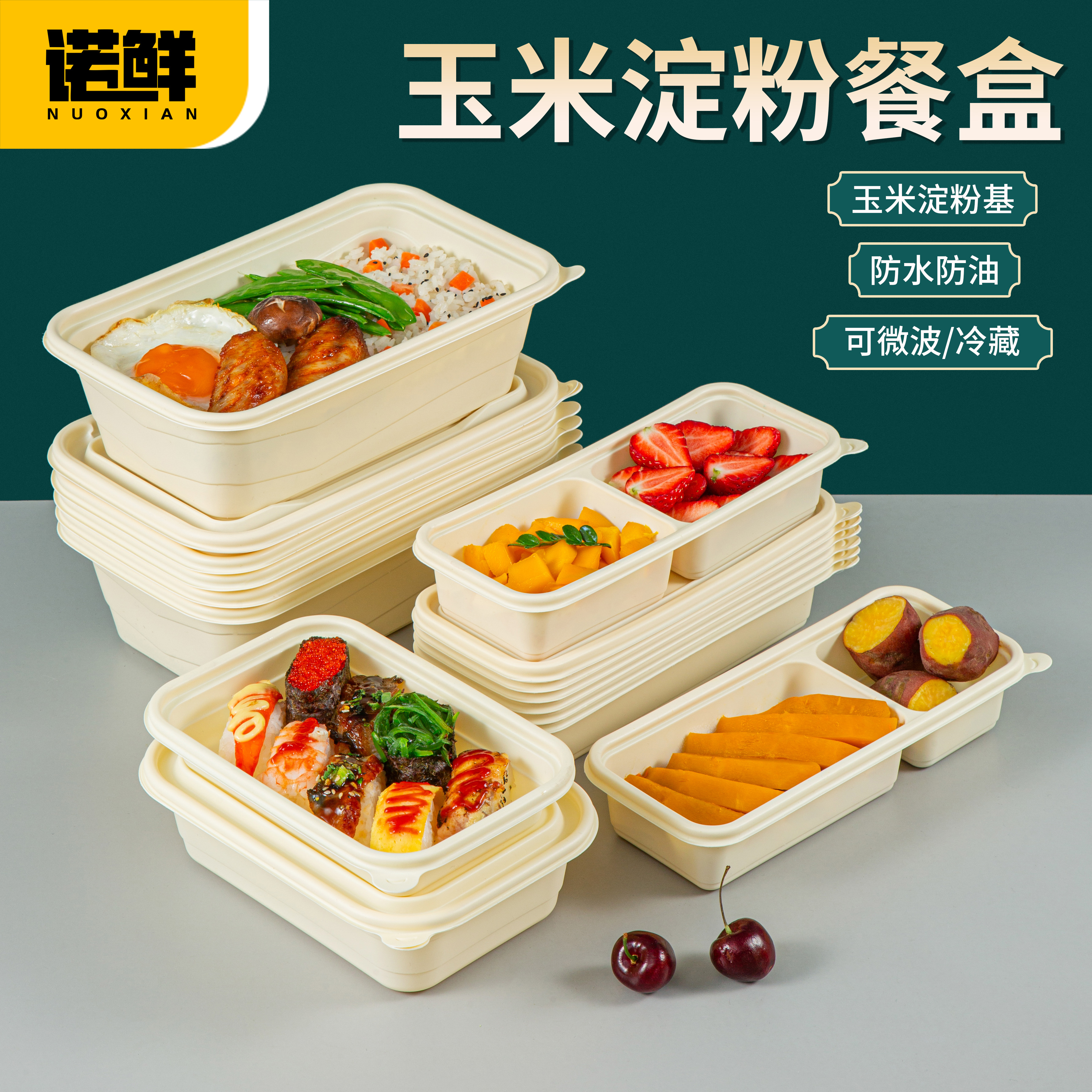 一次性玉米淀粉餐盒环保餐盒食品级外卖家用单双格长方形带盖饭盒