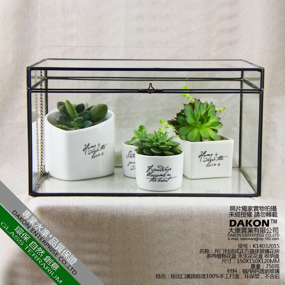 开合封闭式长方体玻璃首饰复古花房桌面收纳盒花店展示用花盒批发