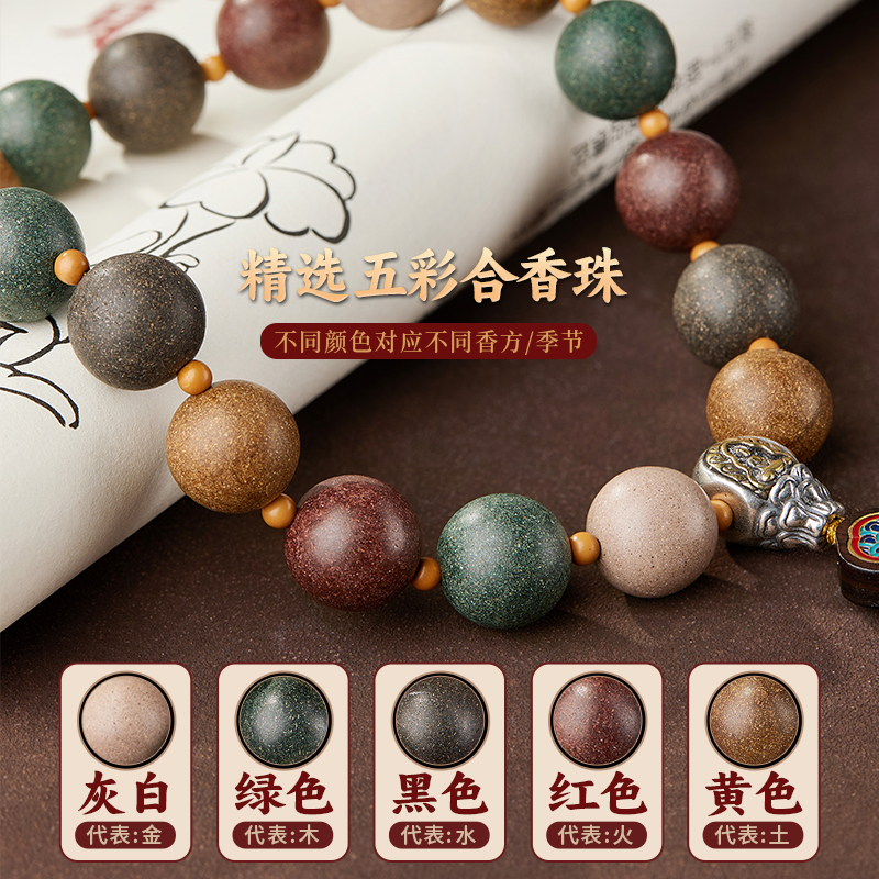 五行合香珠手持珠男文玩念珠手串佛珠高级感流苏非遗中药五方手链