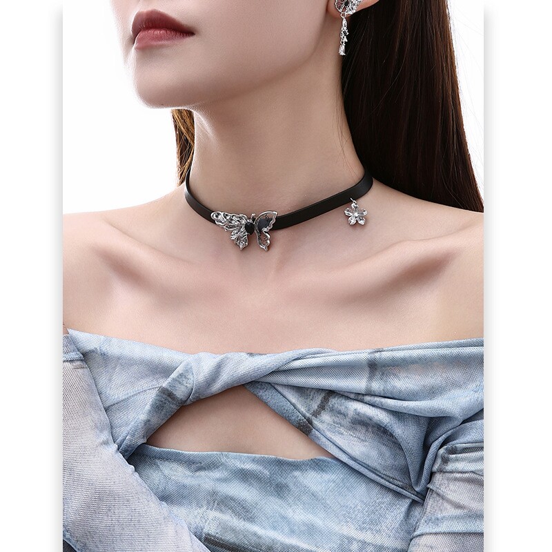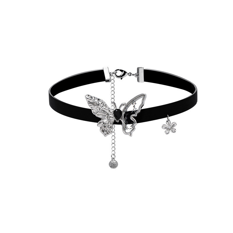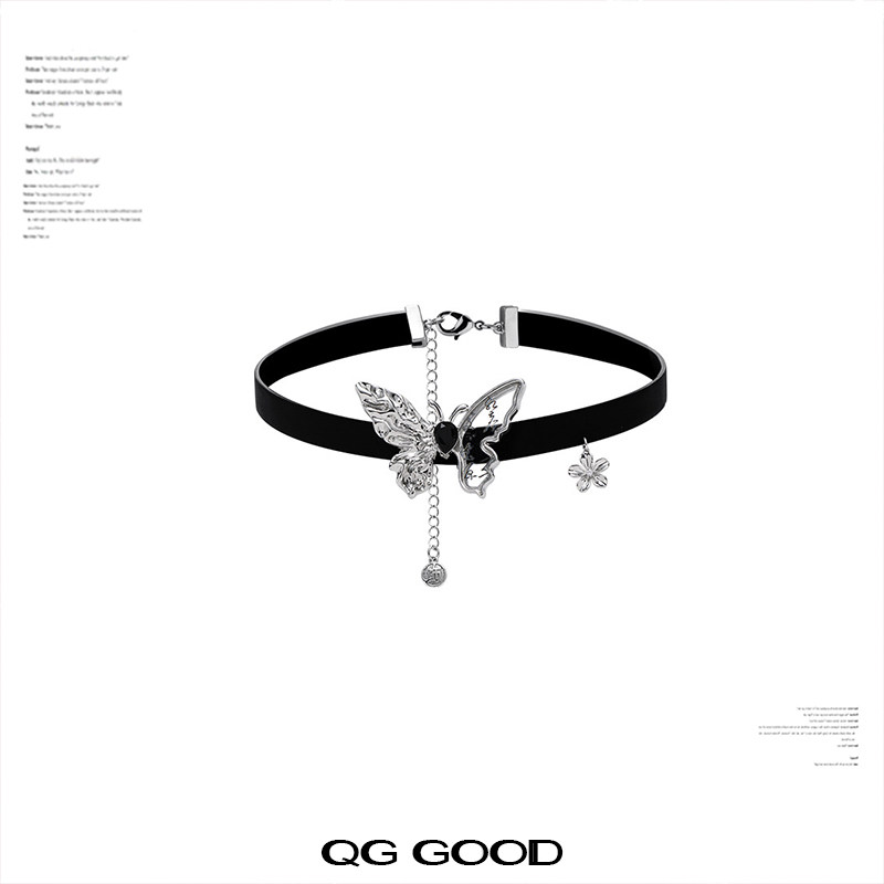 QG原创设计新中式蝴蝶颈链甜酷新款小众个性短款黑色项链精致礼物