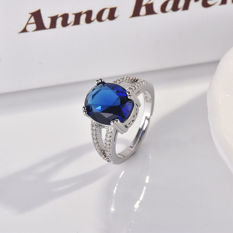 Young新款欧美鹅蛋形奢华时尚订婚戒指 镶嵌红色碧玺开口可调女戒