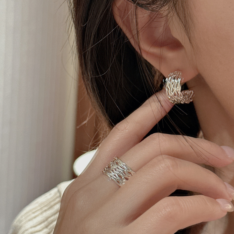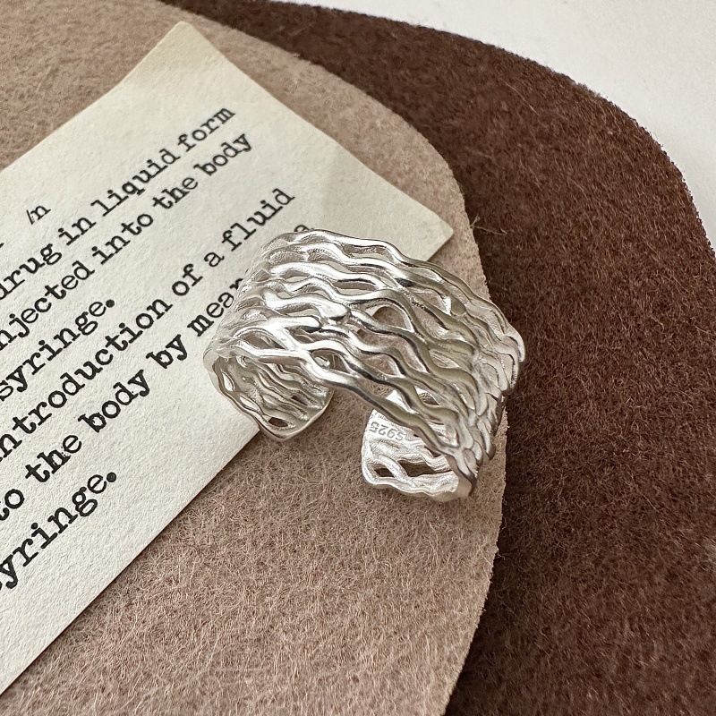 通体S925纯银韩版小众设计感多层波浪基础戒指韩国风简约复古指环