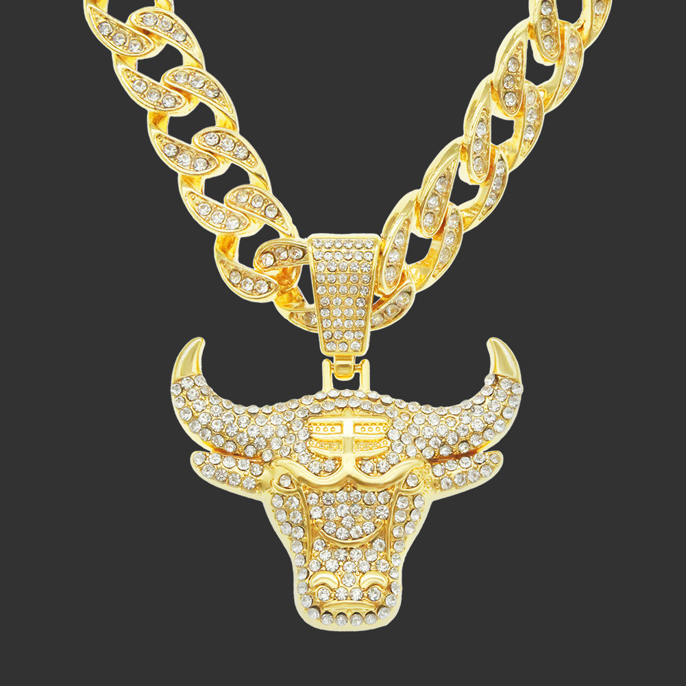欧美嘻哈牛头牛魔王吊坠男女古巴项链HIPHOP满钻嘻哈说唱风项链