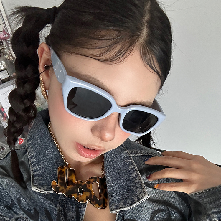 韩版GM方形猫眼马卡龙蓝墨镜女款潮辣妹高级感度假太阳眼镜男夏季