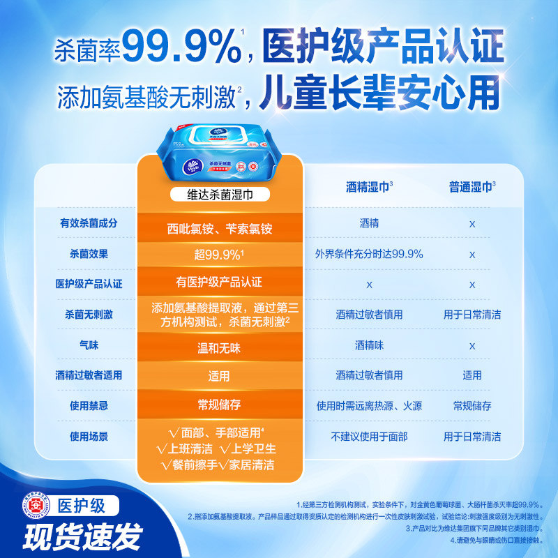 【详情享优惠】维达杀菌消毒湿巾超大尺寸80抽5包医护级温和