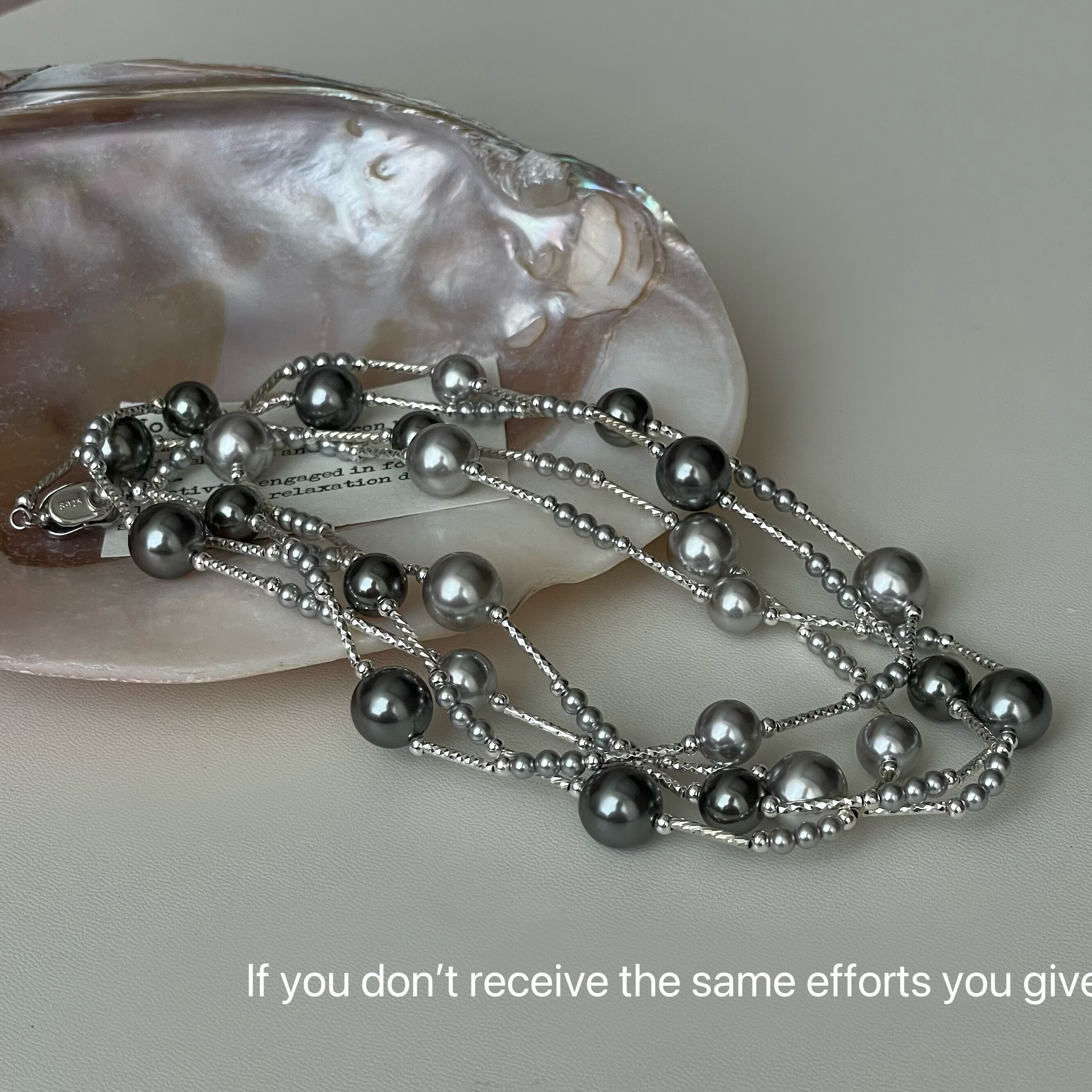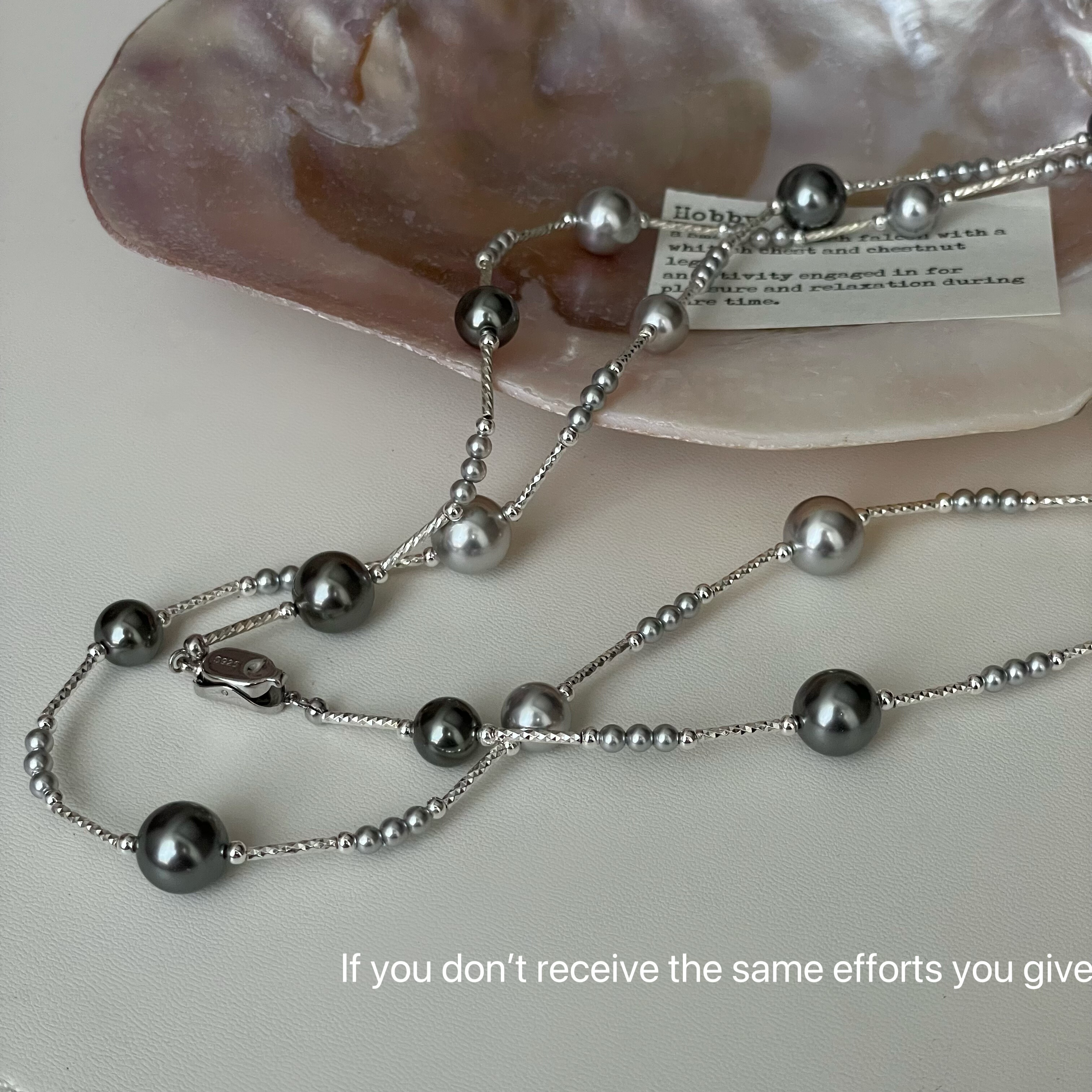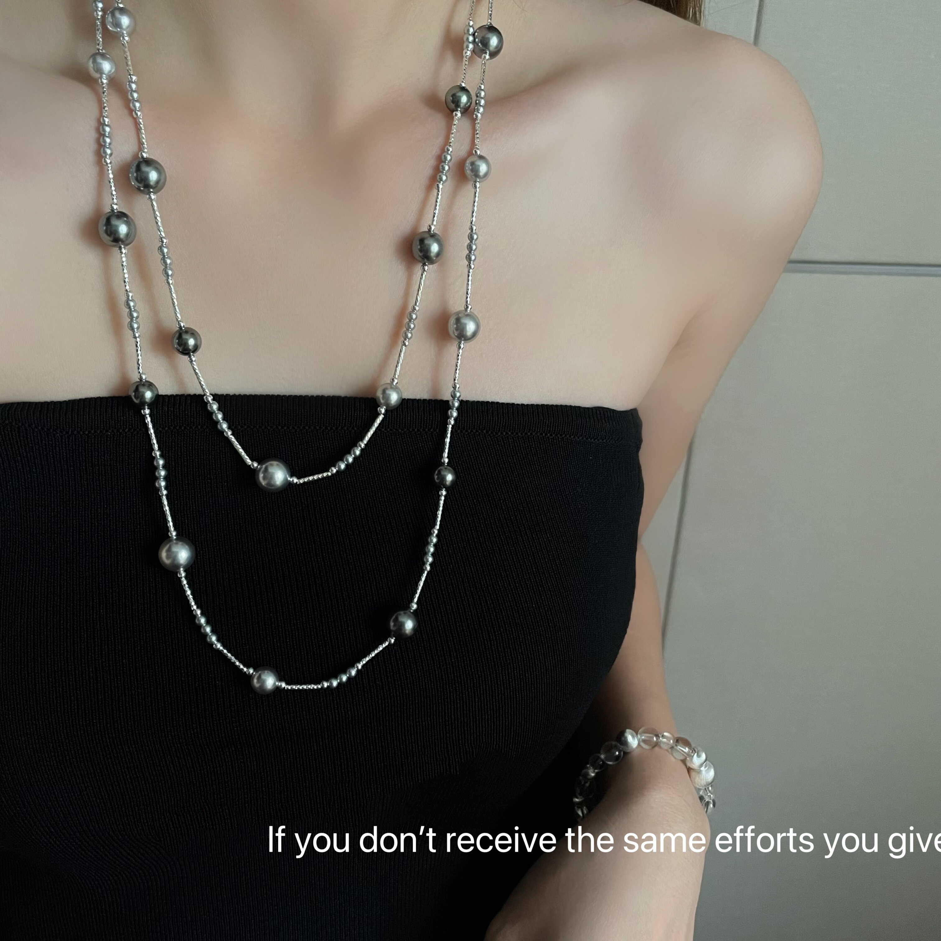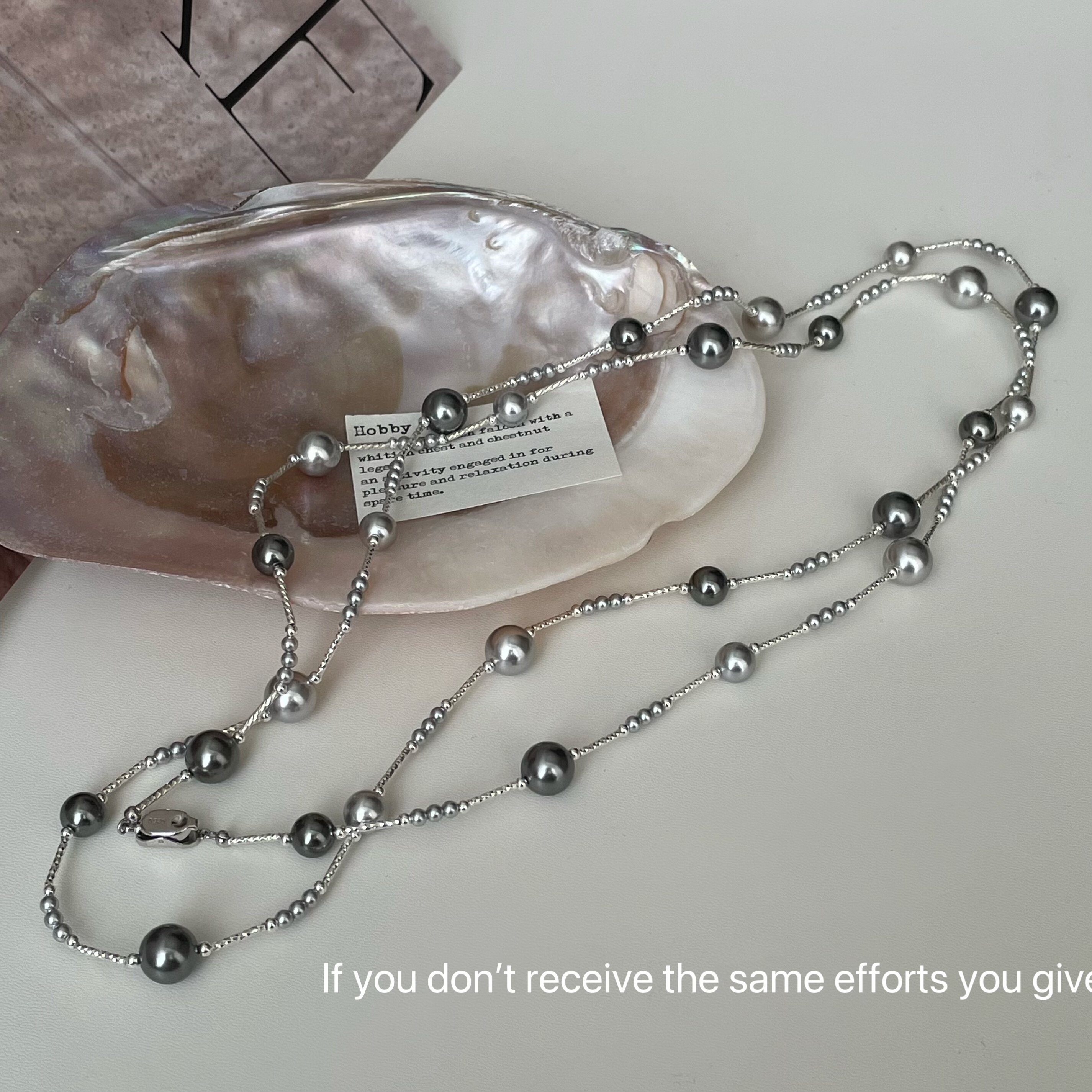 S925纯银多戴满天星施家珍珠长款项链女轻奢气质毛衣链小众高级
