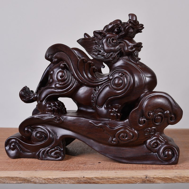 黑檀实木貔貅摆件皮丘木头一对木雕客厅办公室装饰V开业送礼工艺