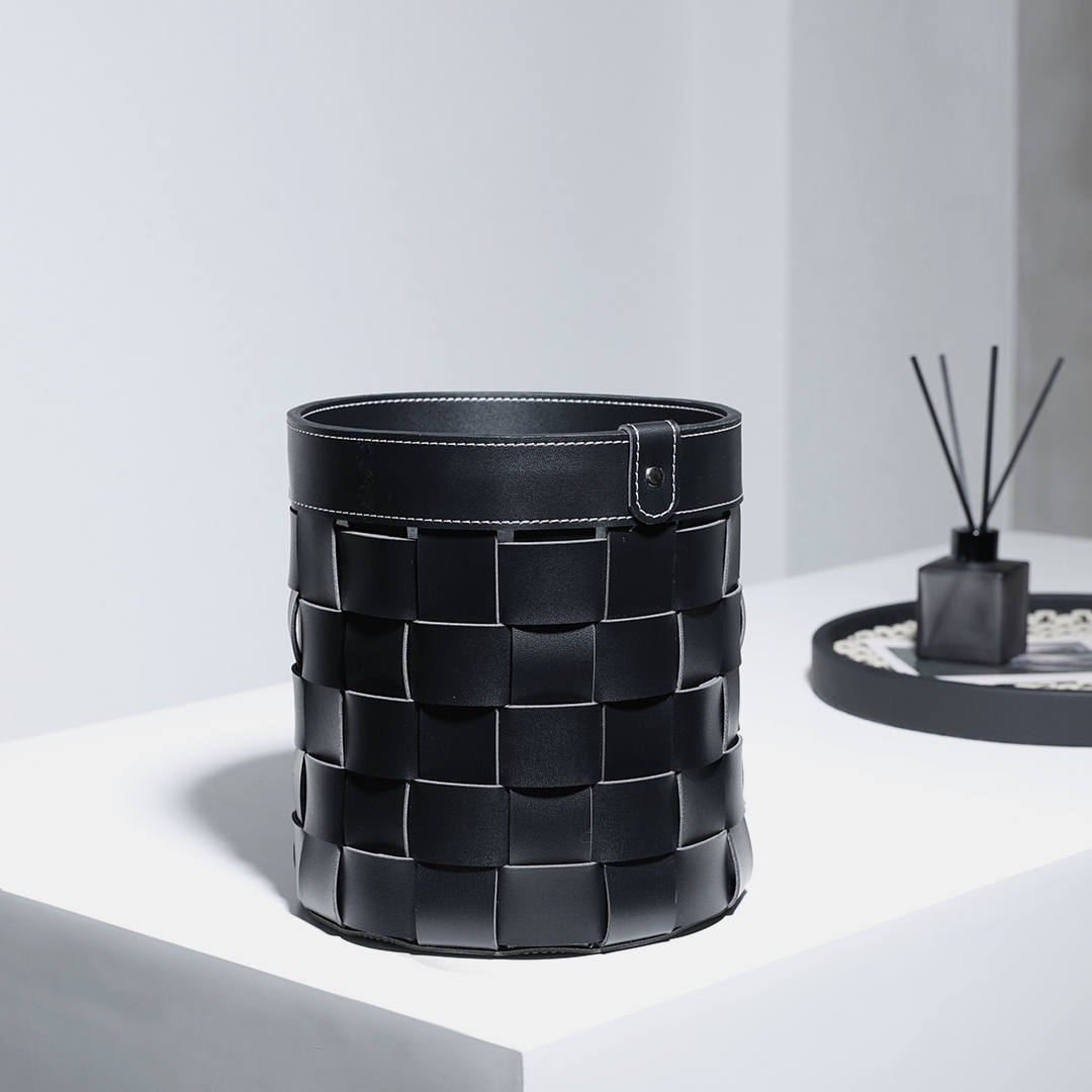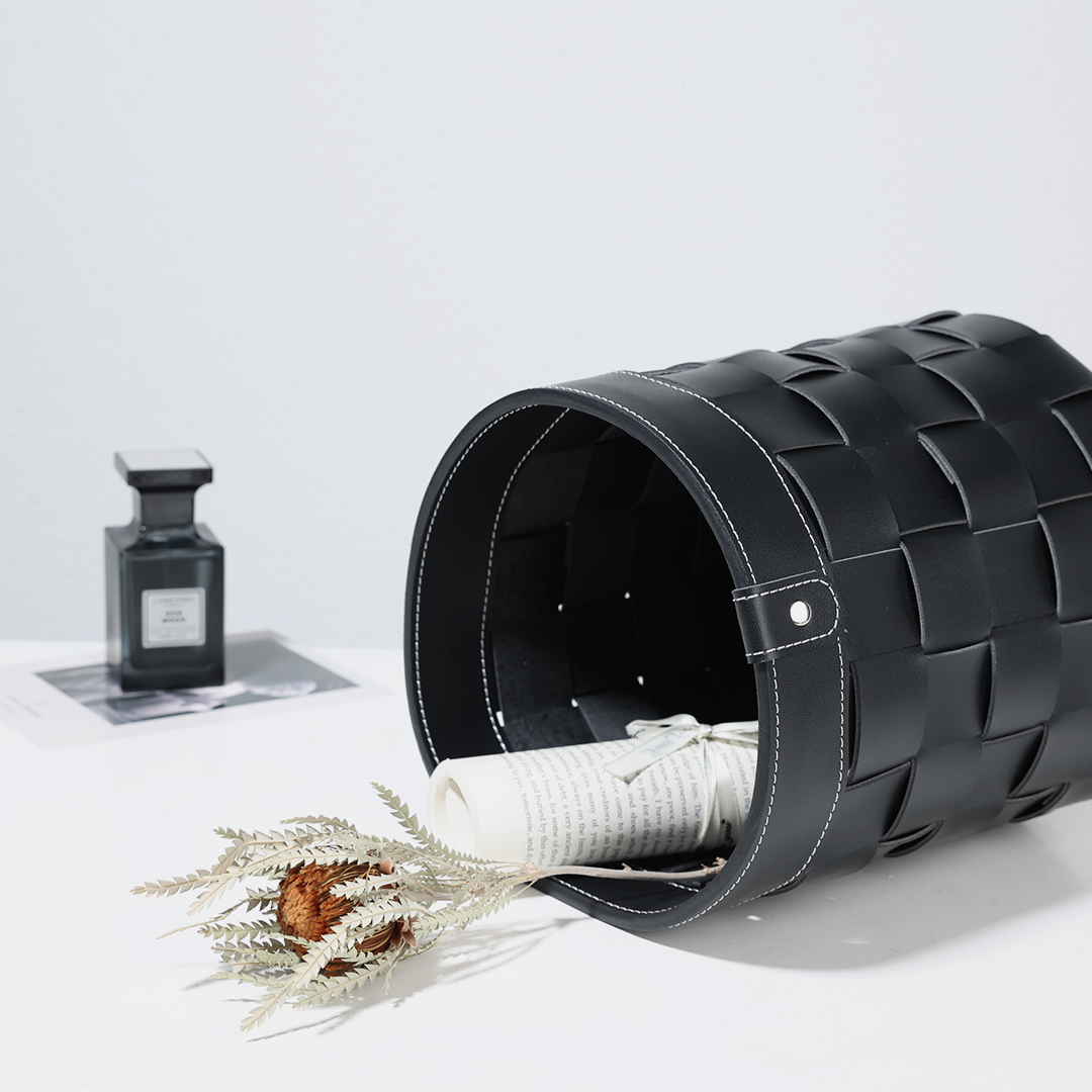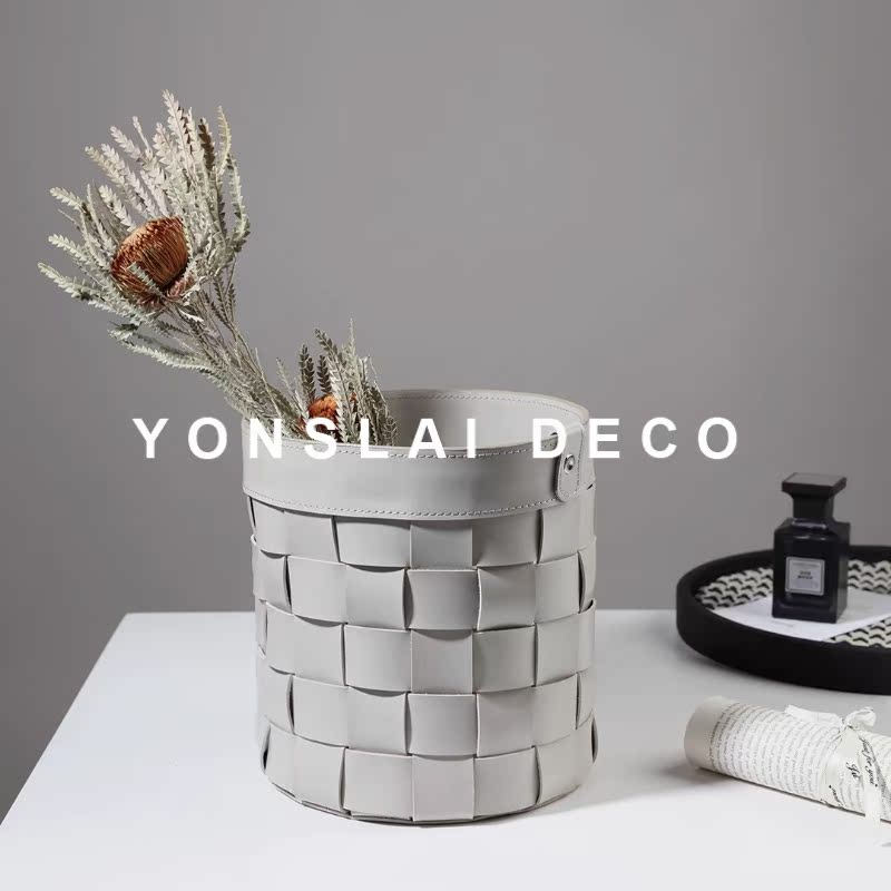 现代轻奢皮革编织饰品盒收纳筐摆件样板间软装卧室玄关书房装饰品