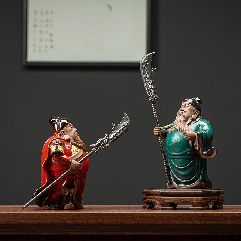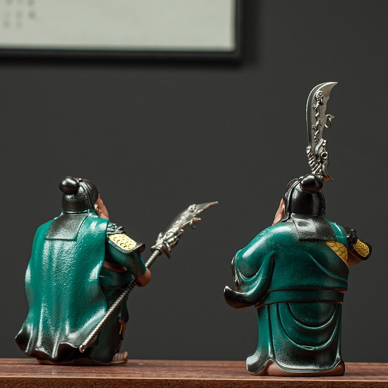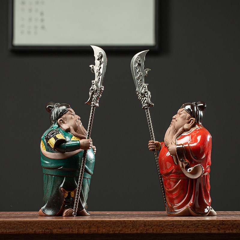 创意紫砂人物摆件关羽关公家居客厅茶室精品茶道茶台茶桌装饰摆设