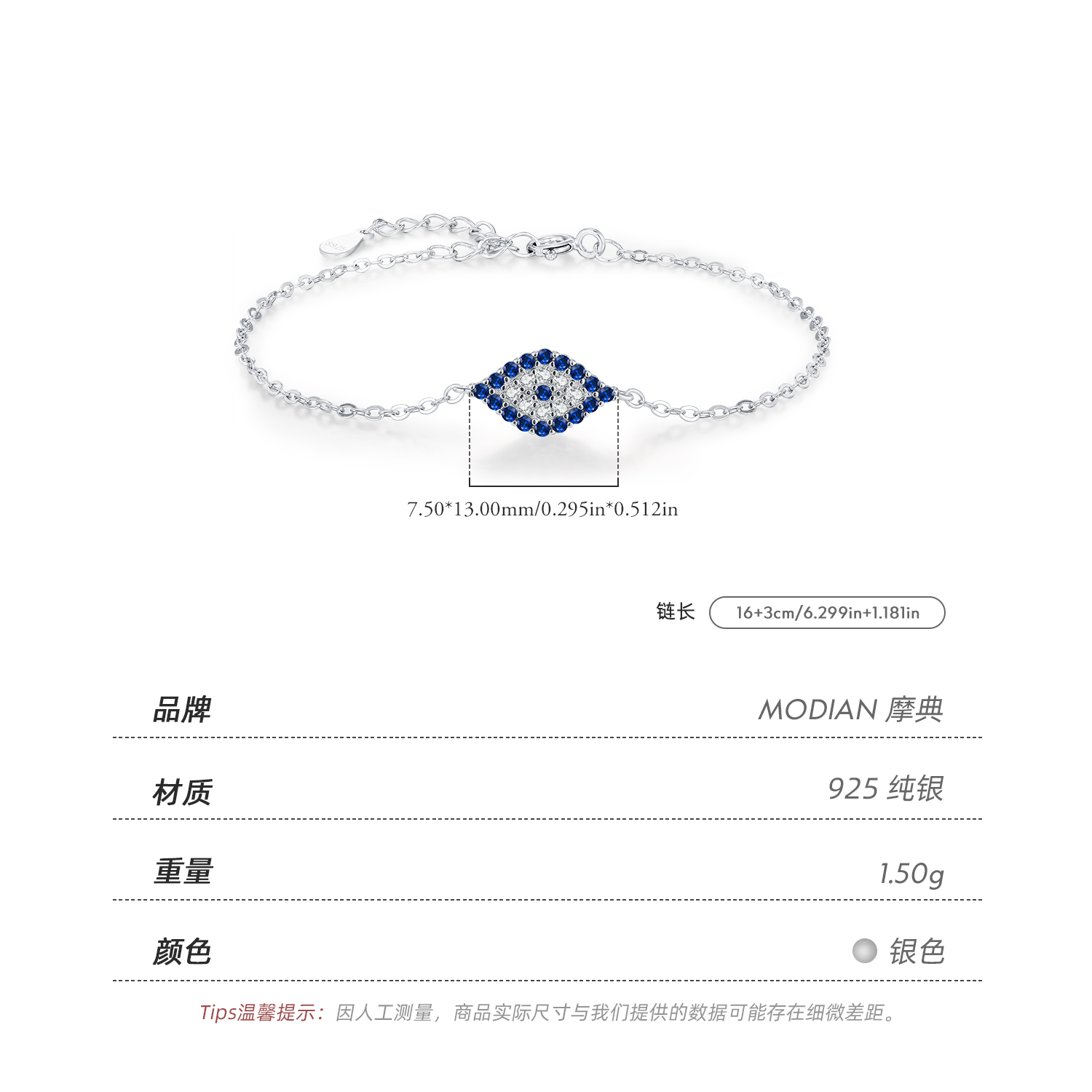MODIAN摩典S925纯银轻奢满钻蓝色眼睛手链女欧美复古百搭个性手饰