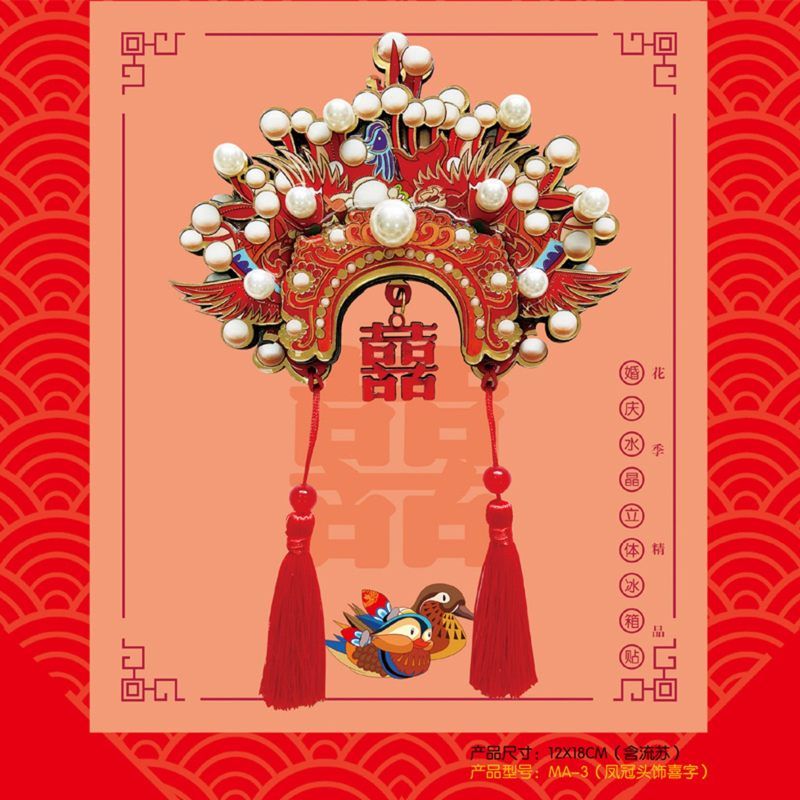 MOMO结婚凤冠管帽冰箱贴水晶国潮磁吸中国风喜庆礼品冰箱贴
