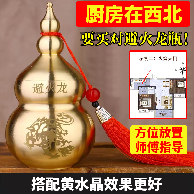 避火龙瓶子厨房西北角纯铜避火龙瓶罐铜葫芦摆件火烧天门泻火龙