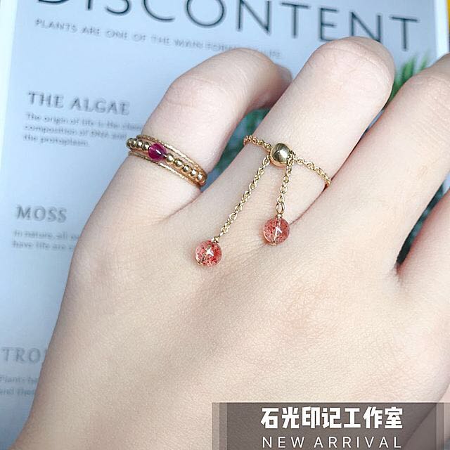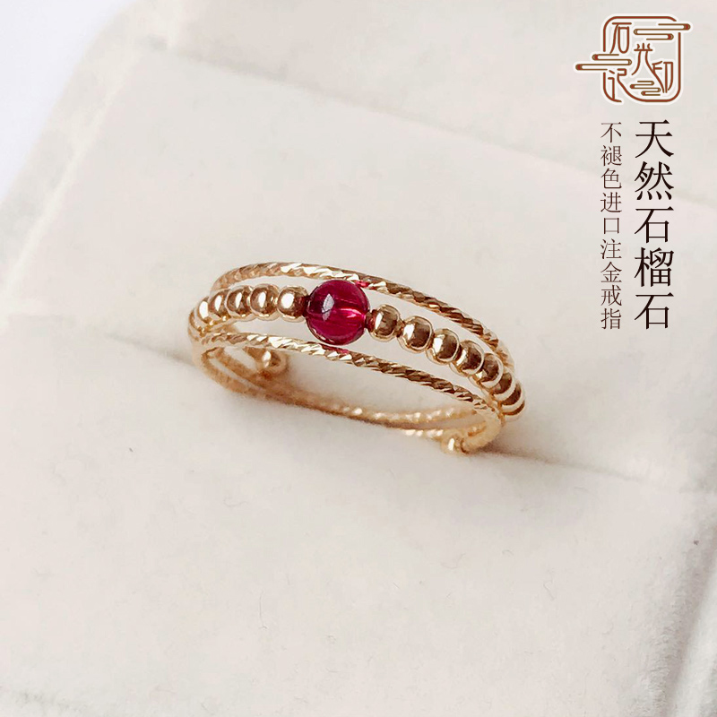 石光印记原创14K包金多层弹簧戒指女生指环尾戒石榴石转运珠礼物