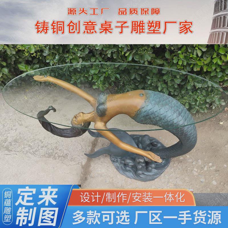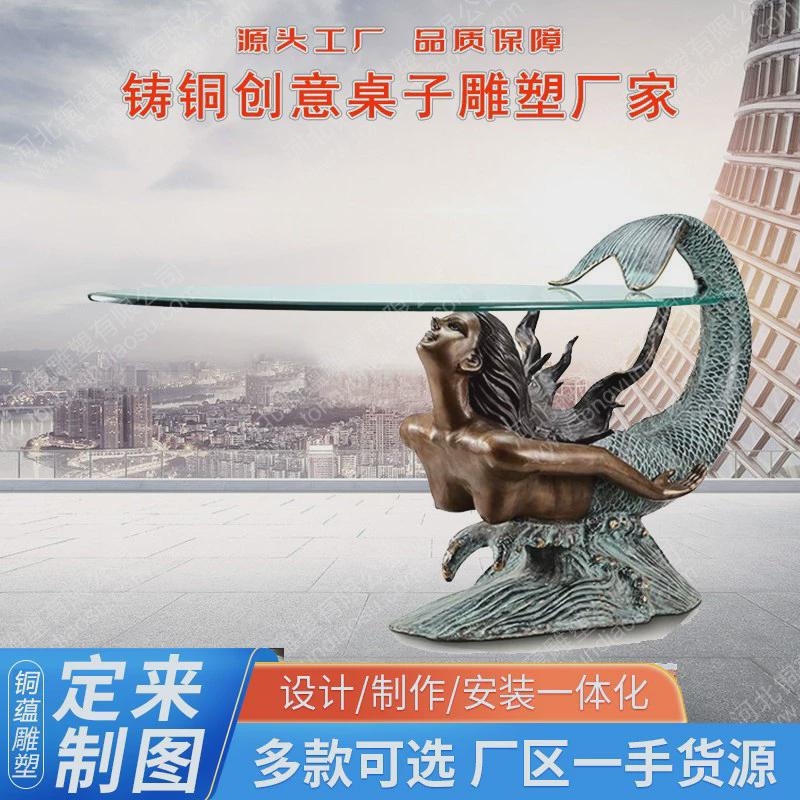 创意铜酒店黄铜美人鱼个性创意桌子设计师桌子小圆桌家用客厅茶几
