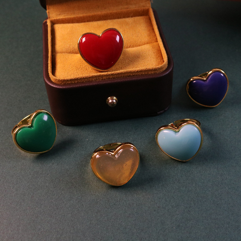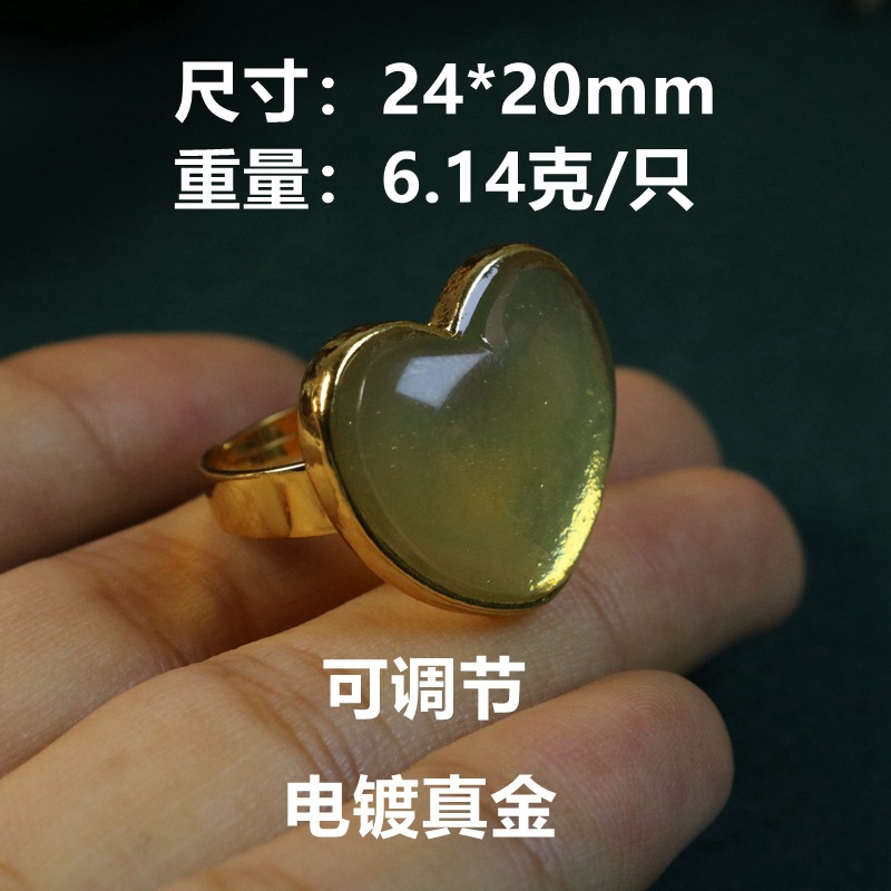 新款 果冻树脂电镀真金甜美简约戒指心形开口可调节指环中古饰品