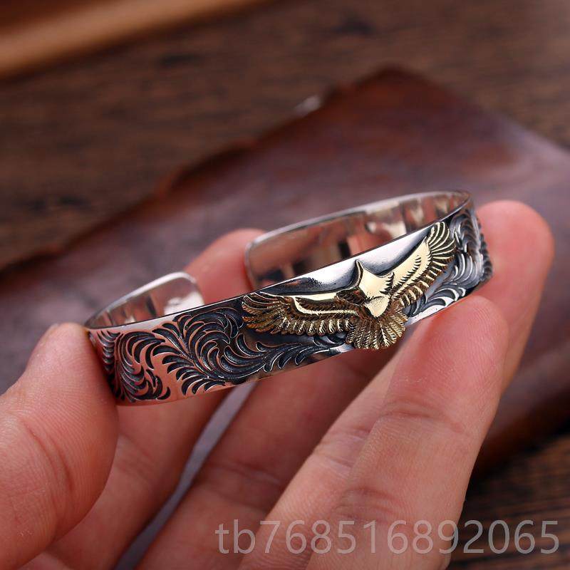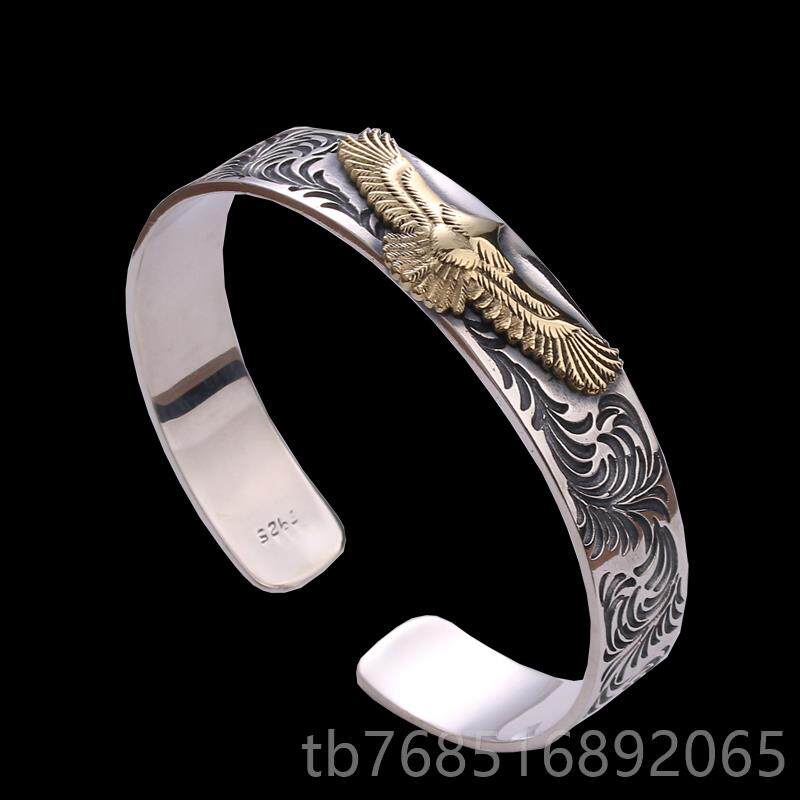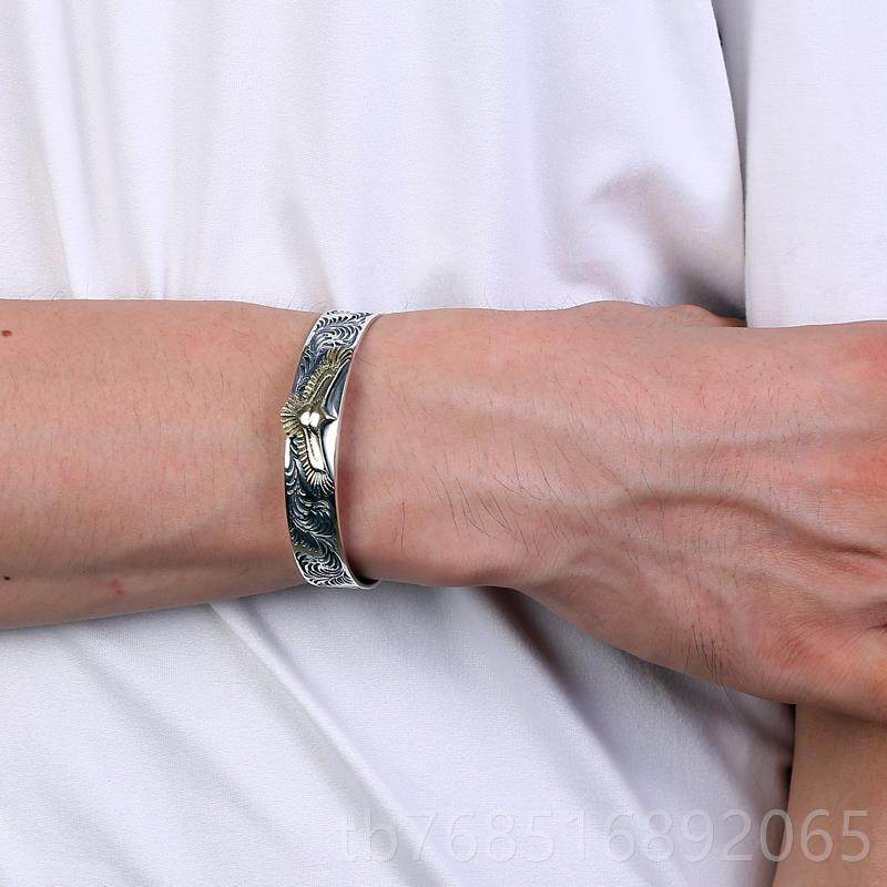 高档S925银桥复古手手工银高吾郎格老鹰唐草男潮人个性男士镯风子