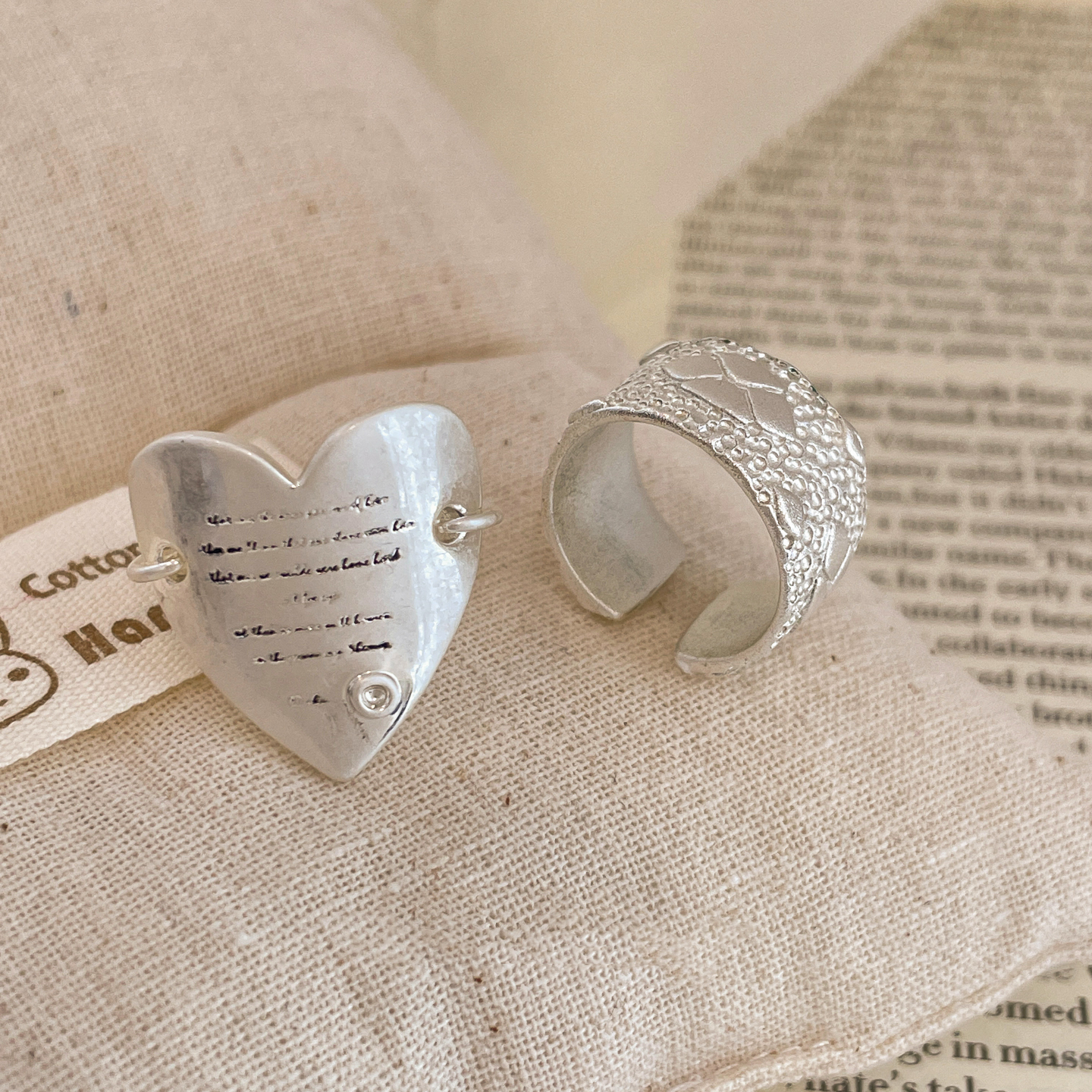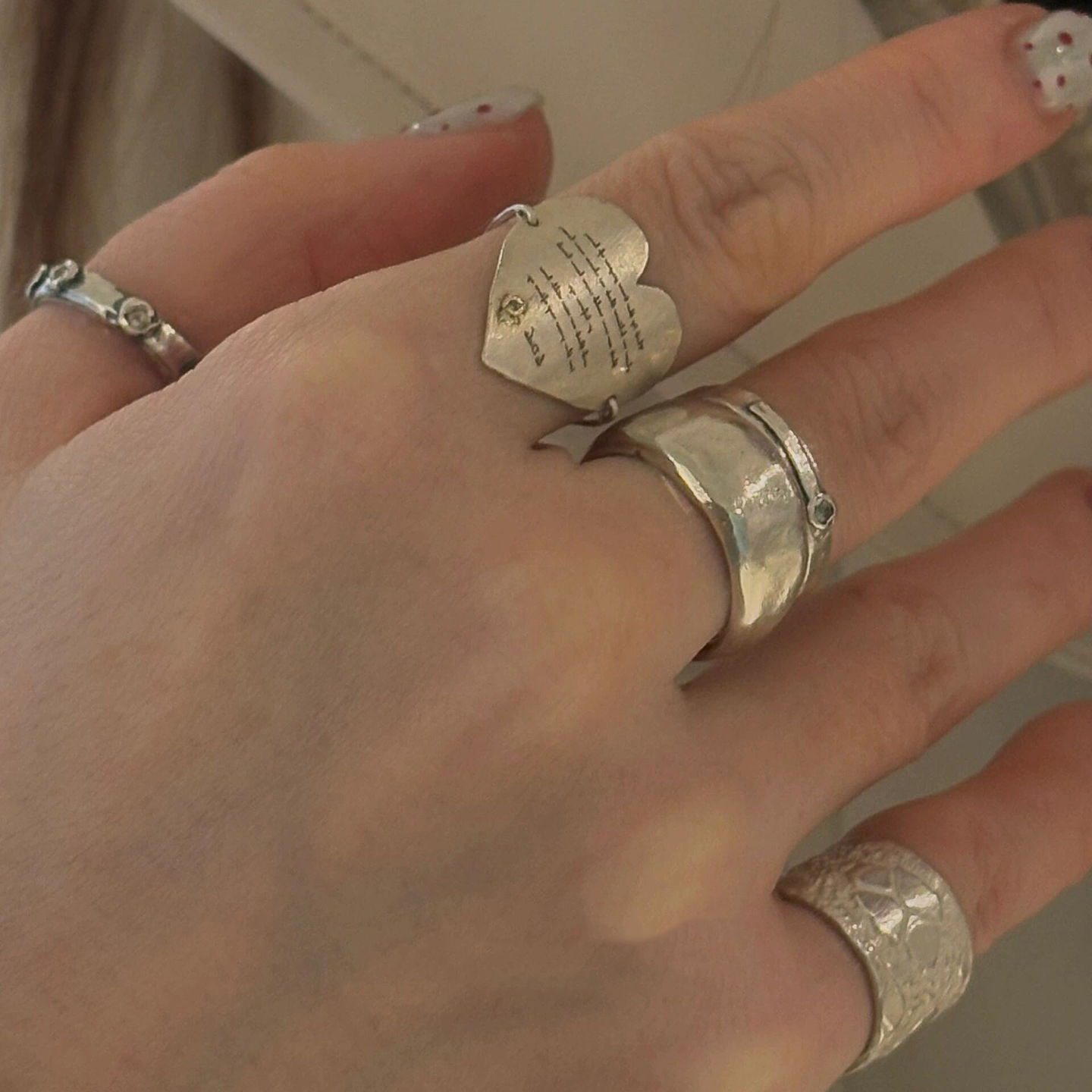 韩系ins风宽面爱心素圈戒指女小众设计轻奢情侣对戒叠戴指环组合
