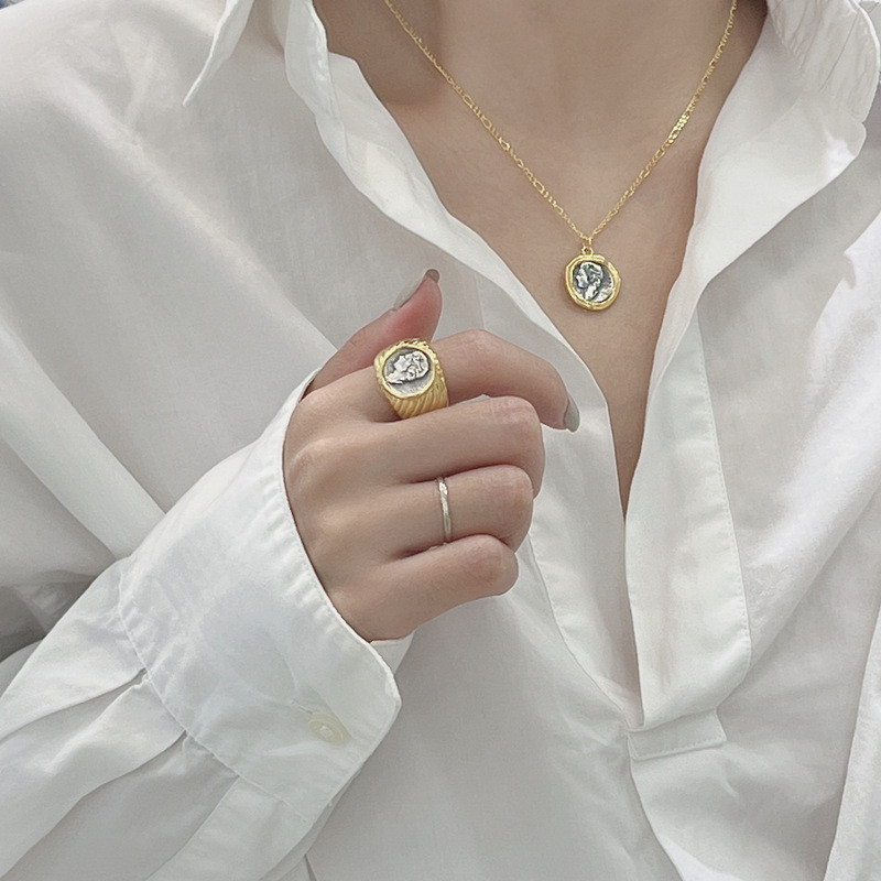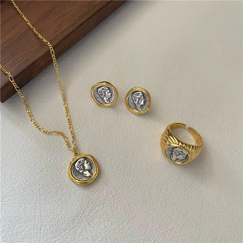S925纯银韩版轻奢复古风古币系列套装浮雕女神仿古钱币项链批发