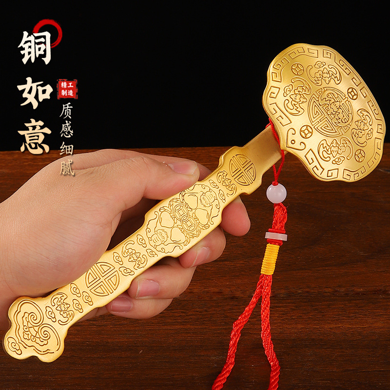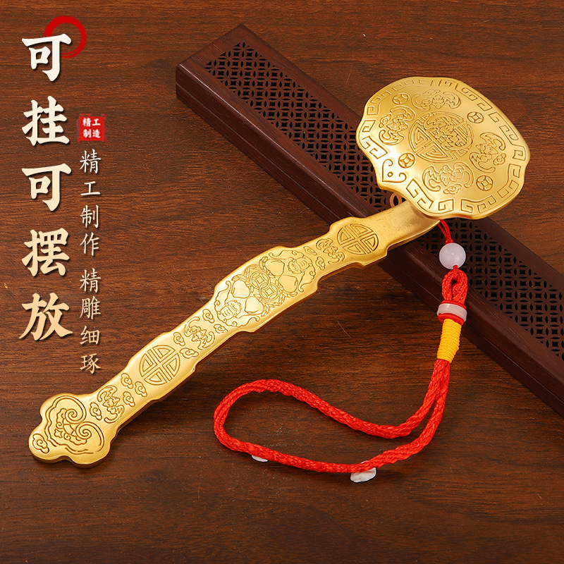 铜如意摆件黄铜如意手把件家居装饰品酒柜工艺礼品摆设五福如意