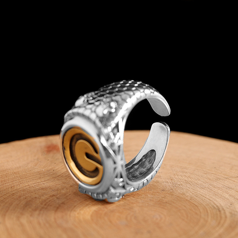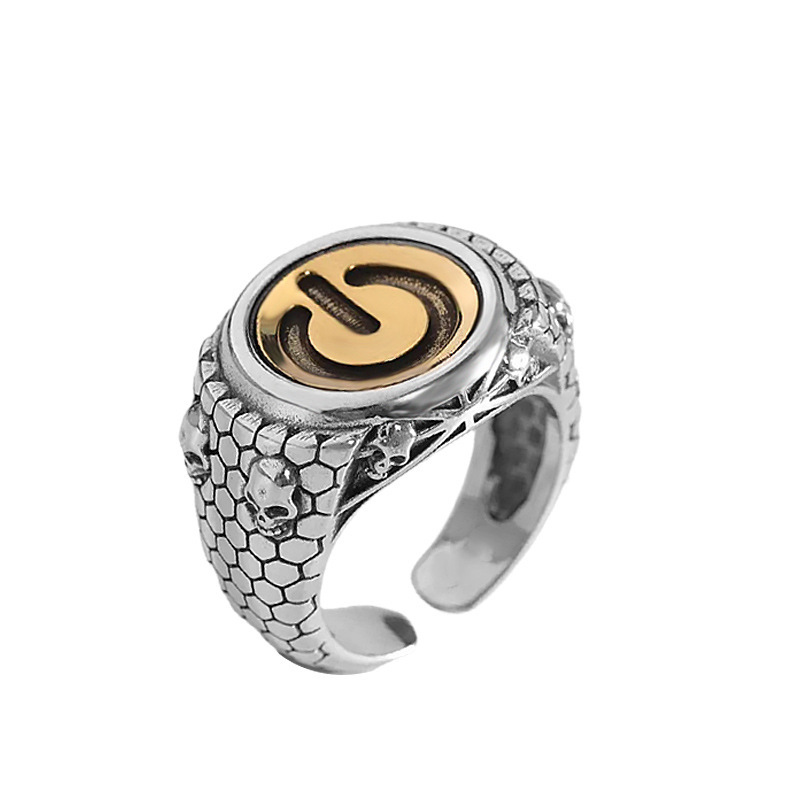 新品个性时尚流做旧开口指环男士百搭小众开关电脑戒指