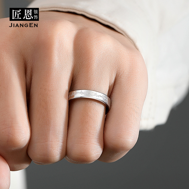 925纯银戒指男女士闭口食指心电图指环单身个性日韩百搭小众设计