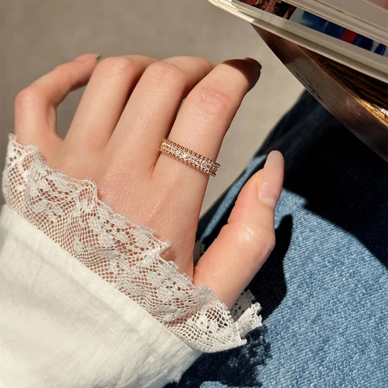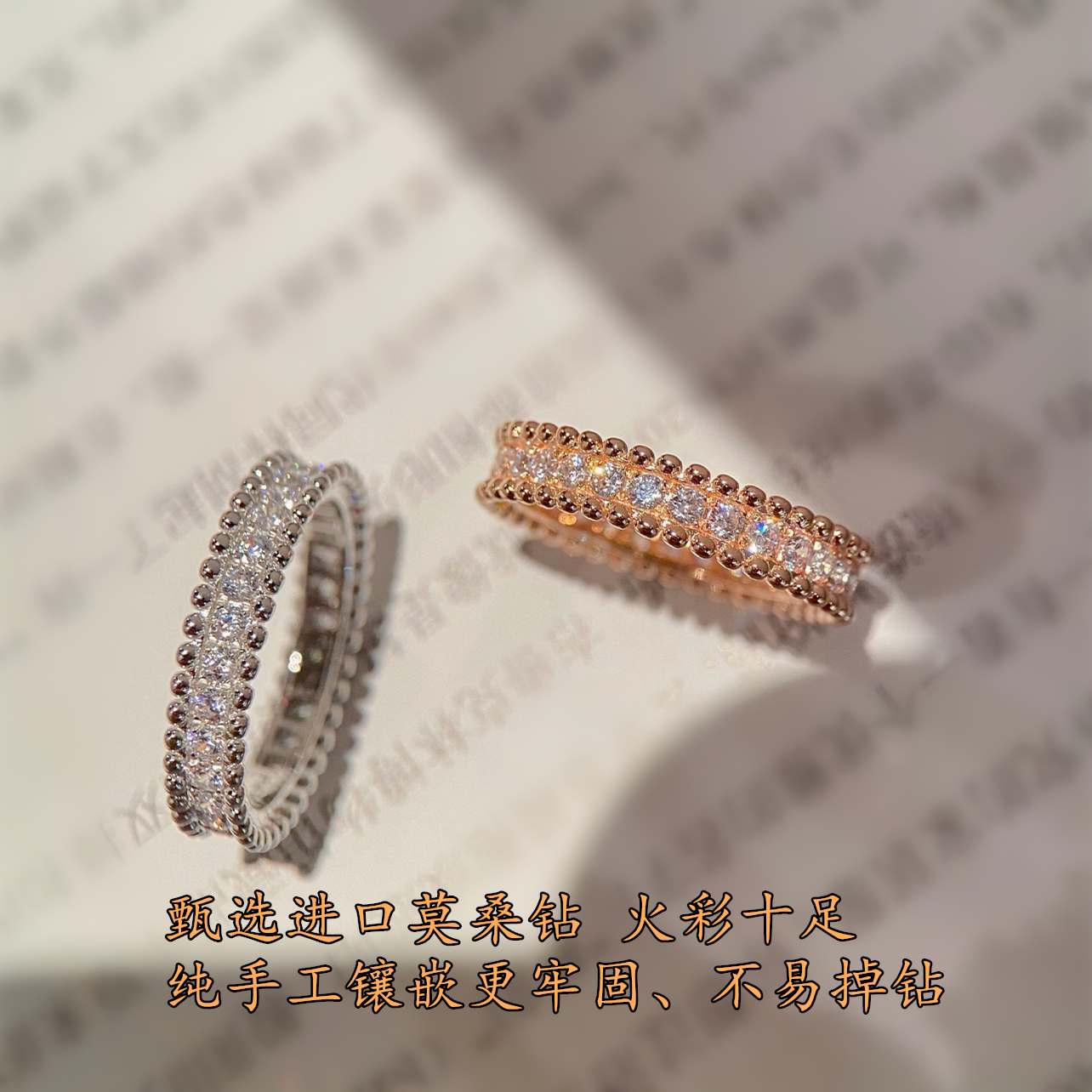 高版本满钻戒指女戒镀18k玫瑰金对戒时来运转园珠边满天星指环