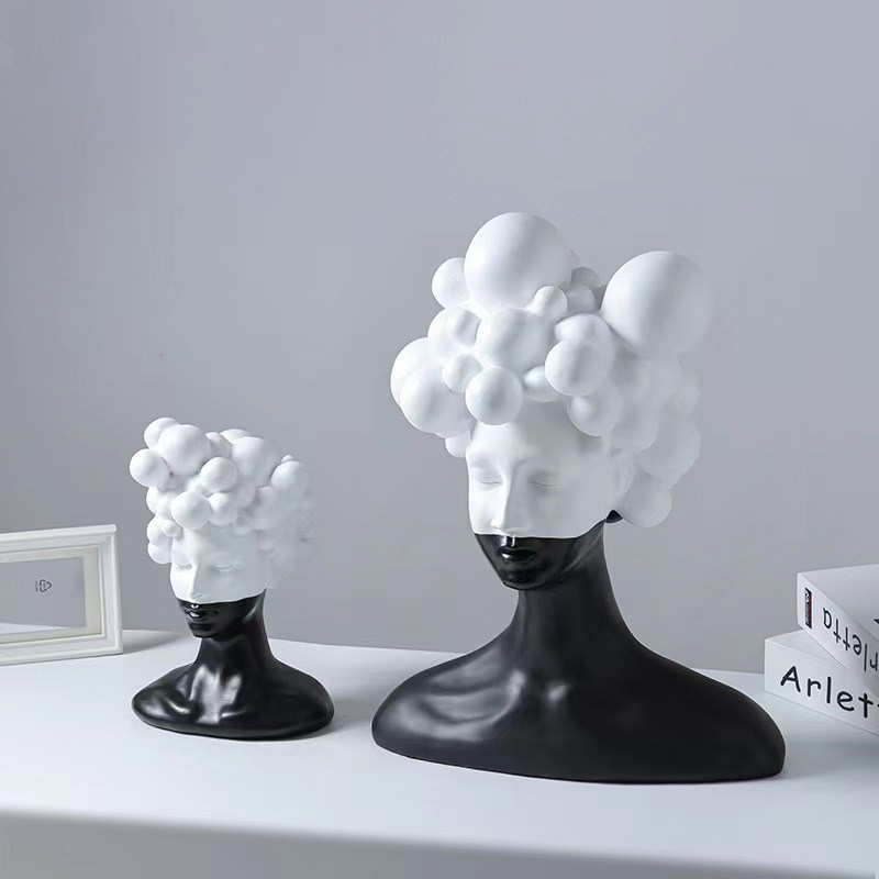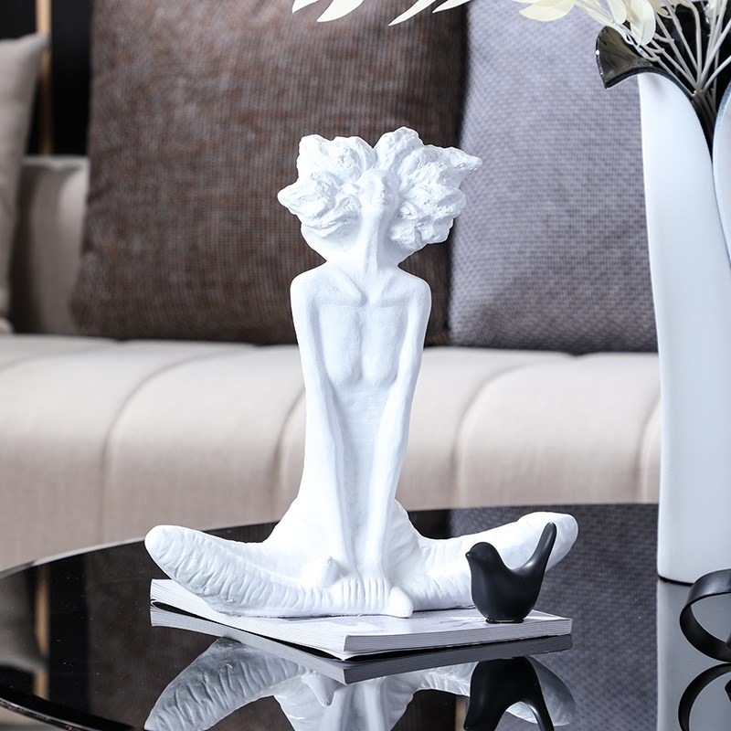 现代简约黑白女郎人物雕塑艺术摆件样板J间客厅玄关茶几家居装饰