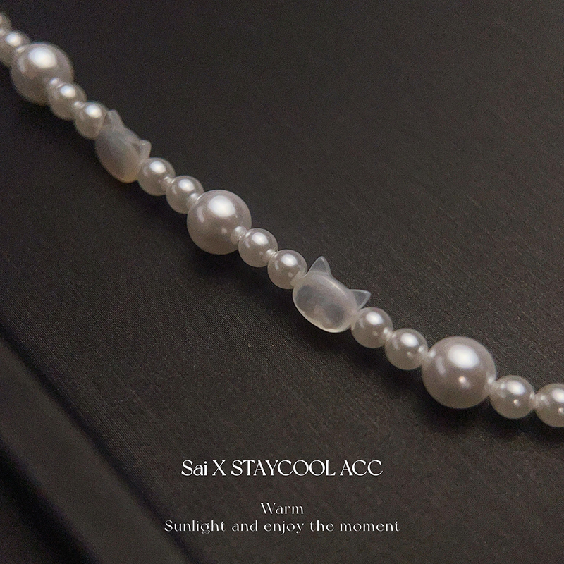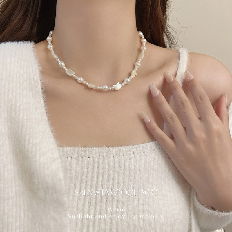倪妮同款天然白色猫咪海贝母施家珍珠女士项链高级感锁骨链法式风