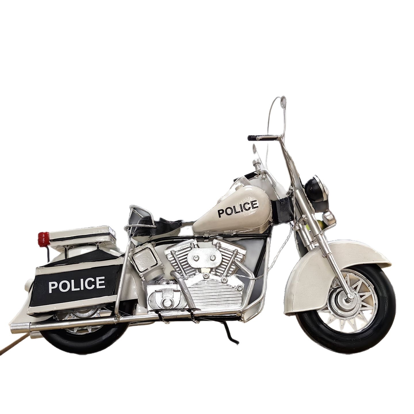 白色警车POLICE摩托车模型桌面摆件铁艺装饰品书房橱窗拍摄道具