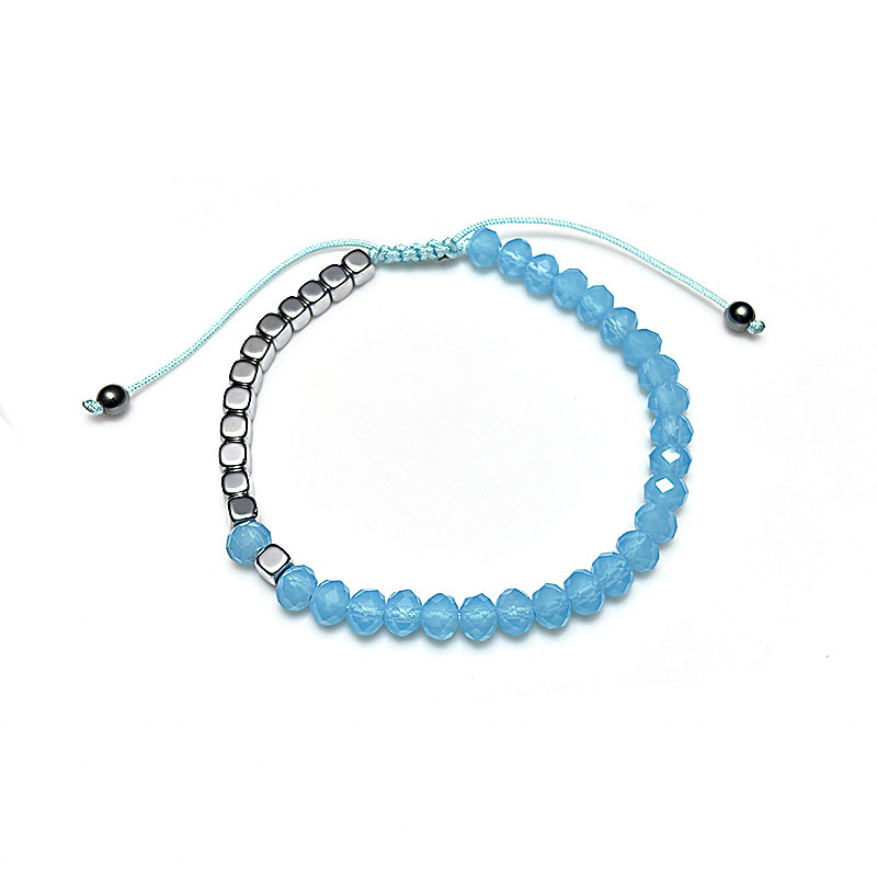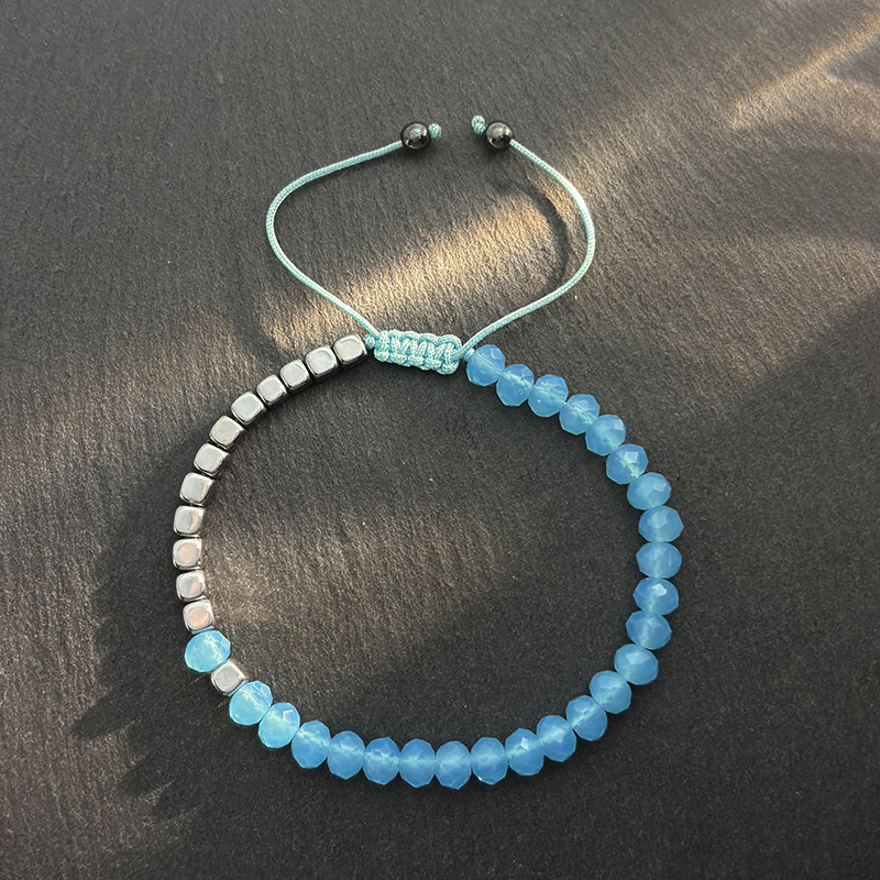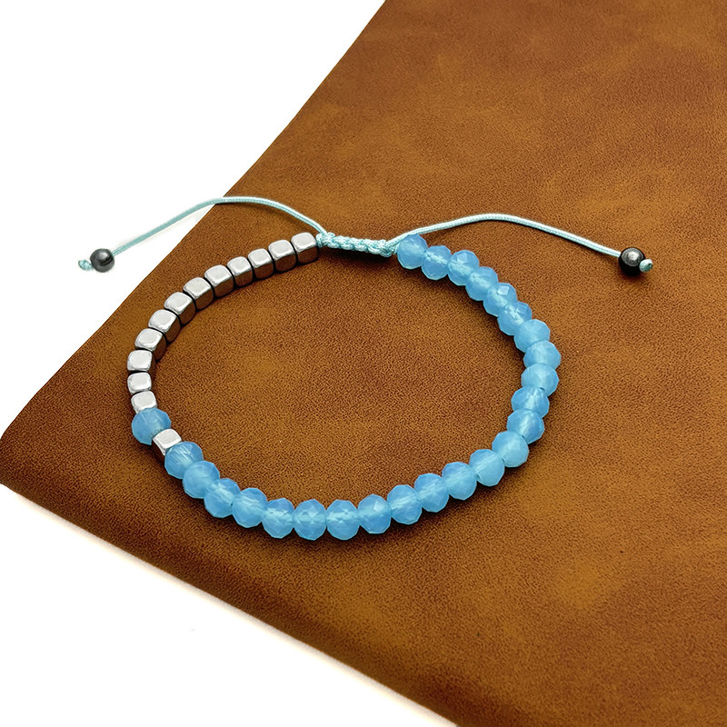 波西米亚风方形赤铁矿珠手工串珠可调节手链蓝色切面水晶珠手链