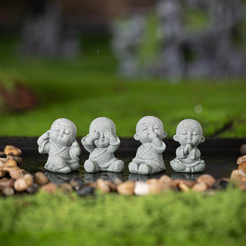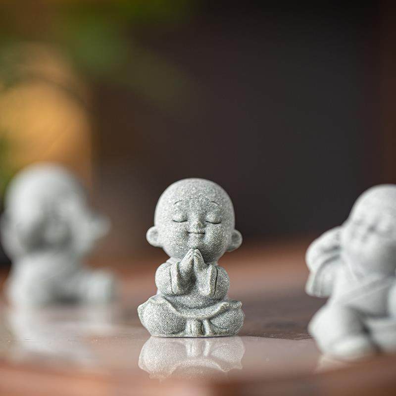 可爱四不小和尚景茶宠小jz202410摆中式小沙弥鱼缸造景盆件观栽微