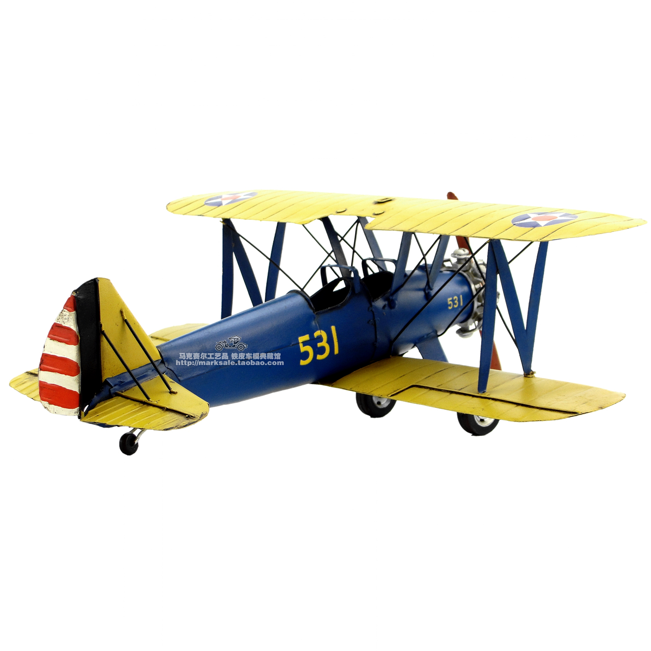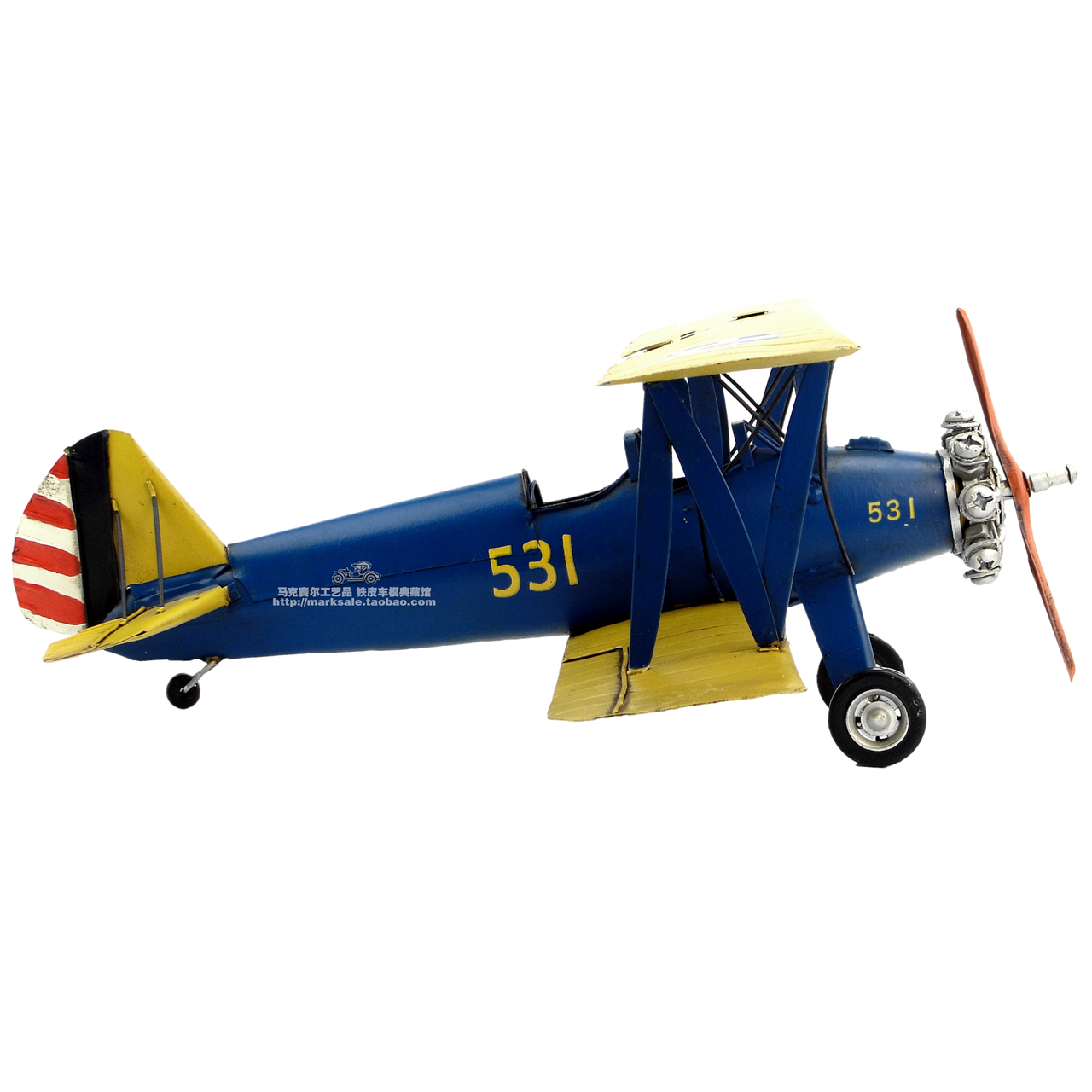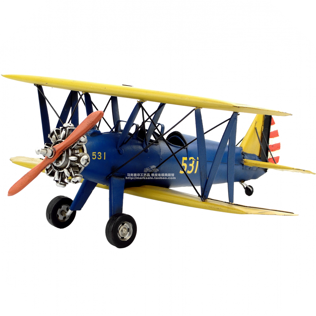 1941年波音PT-17教练机 复古铁艺飞机模型装饰工艺品创意手工摆设